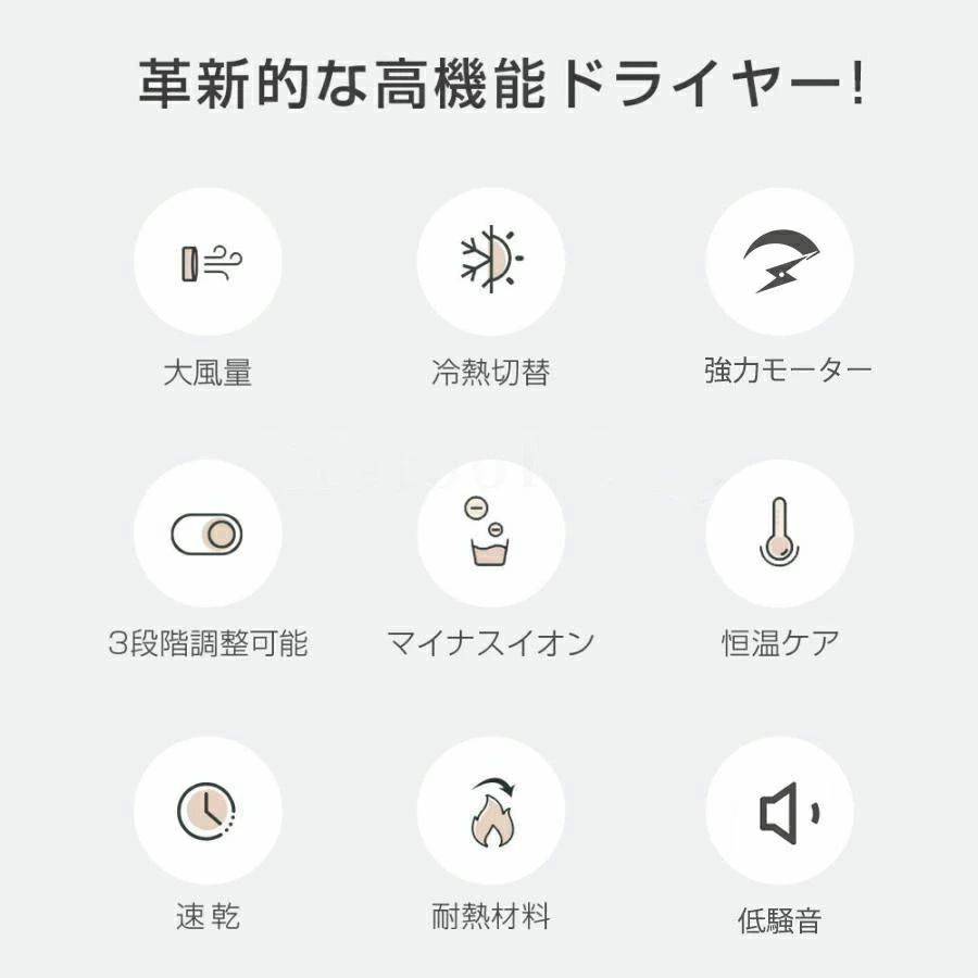 大風量 1分速乾 ヘアドライヤー 美髪 ブラック ホワイト シルバー グレー グリーン パープル レッド