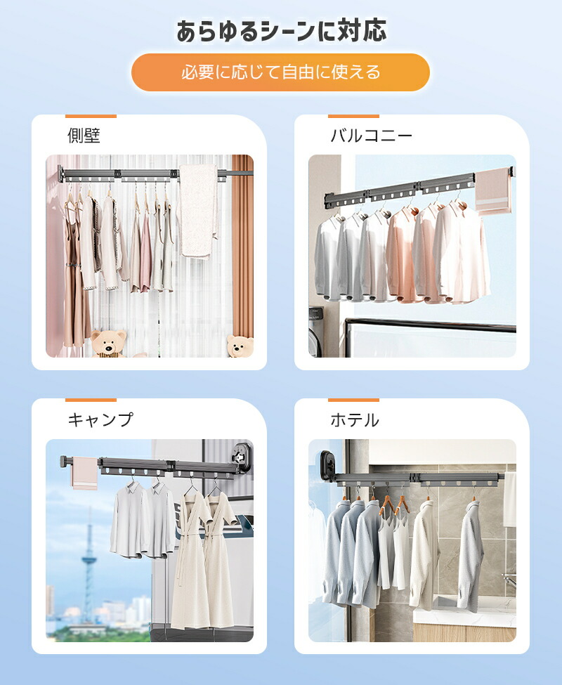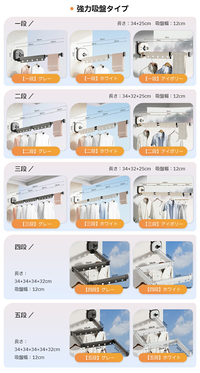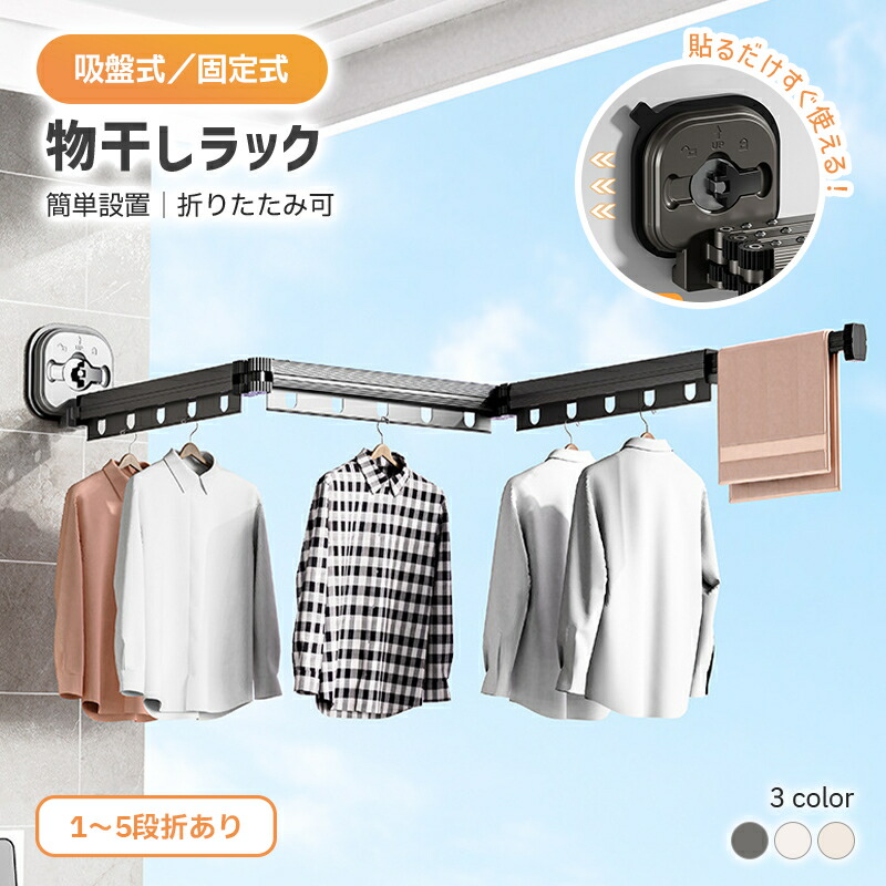 衣類乾燥ラック 吸盤壁掛折りたたみ物干 強力吸盤タイプ 粘着式/ネジ固定タイプ シャワーカーテン グレー ホワイト アイボリー