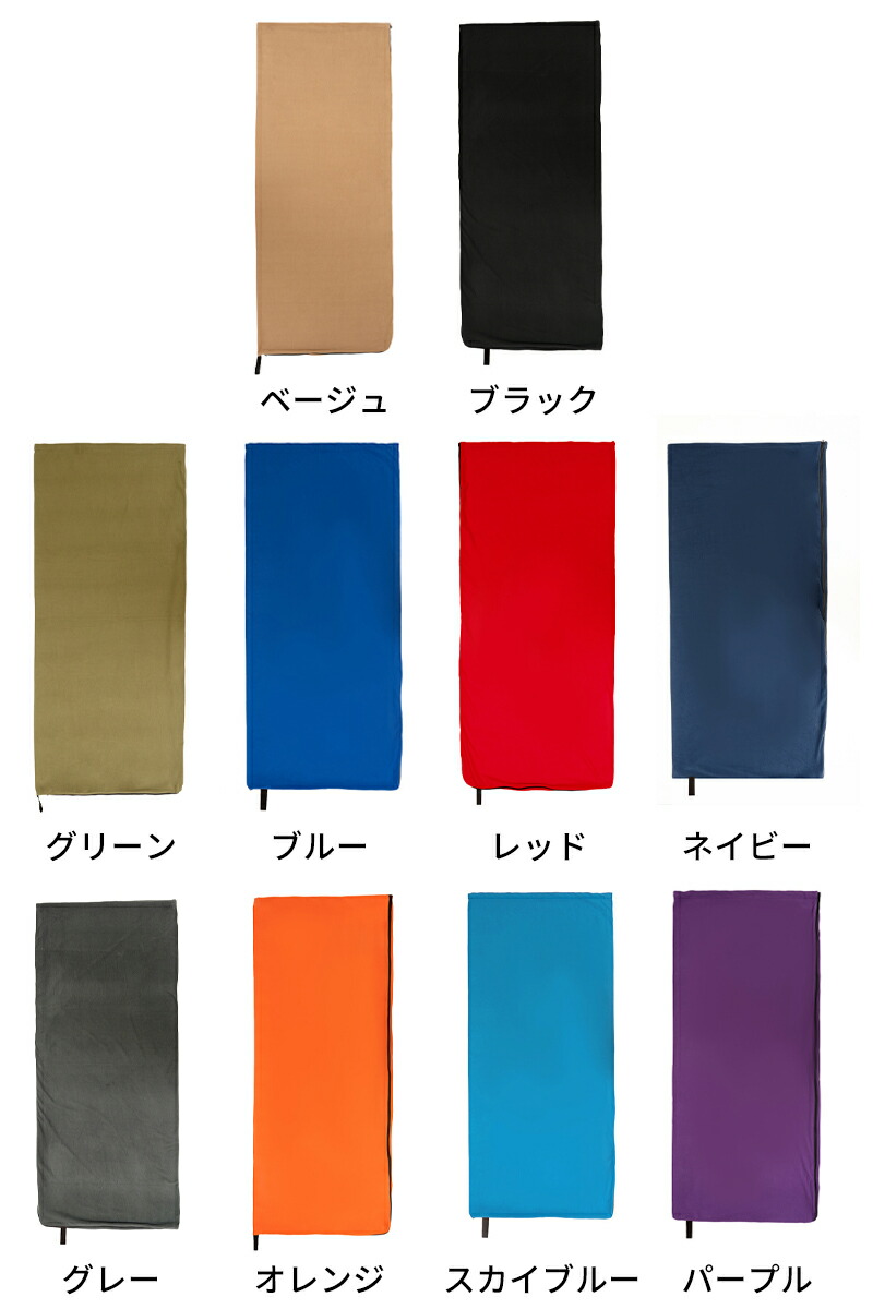 インナーシュラフ フリース寝袋 毛布 ベージュ ブラック グリーン ブルー レッド ネイビー グレー オレンジ スカイブルー パープル