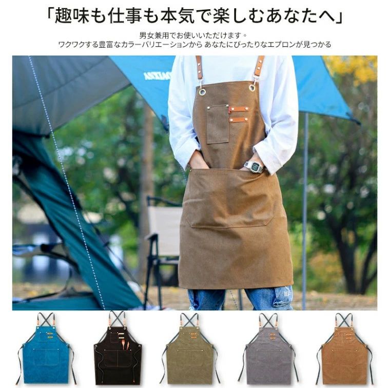 エプロン 帆布 ポケット ワークエプロ 作業服 エプロン 早い者勝ち ブルー ブラック グレー ブラウン