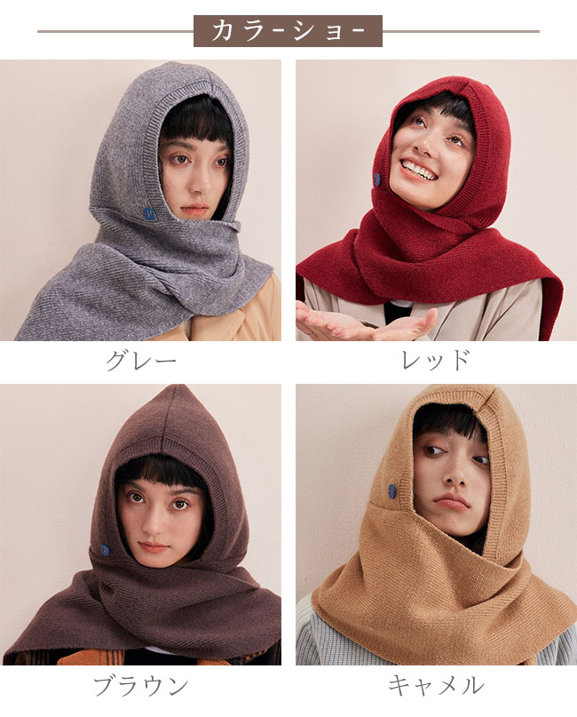 フードマフラー レディース バラクラバ バッグ 小物 ブランド雑貨 人気 グレー レッド ブラウン キャメル