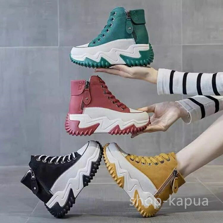 美 ハイカット レディース靴 7cm身 レディース靴 スニーカー 人気 イエロー上下 グリーン ブラック レッド 35(内寸225mm) 36(内寸230mm) 37(内寸235mm) 38(内寸240mm) 39(内寸245mm) 40(内寸250mm)