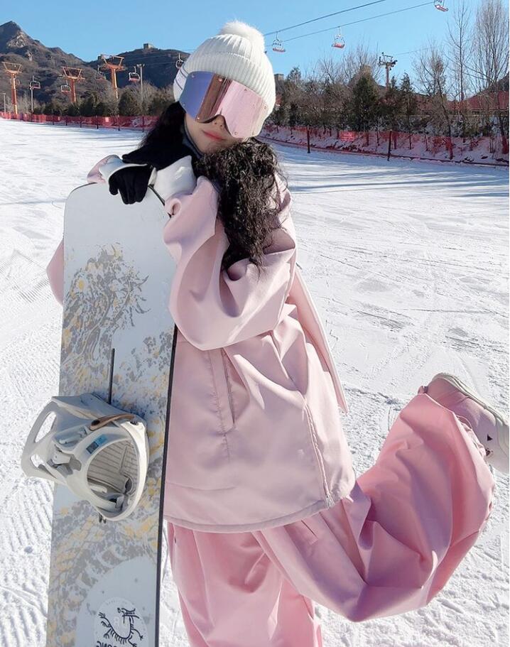 スノーボードウェア レディース スキーウェア 上下セット ピンク 超可愛い ウサギ耳 フード付き 登山 雪遊び スノボウェア スノボ ウェア 防水防風 暖かい ジャケット パンツ ボードウ 2点セット