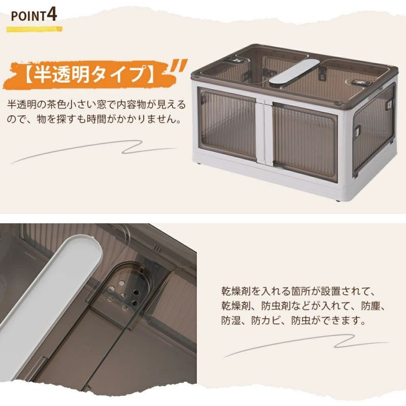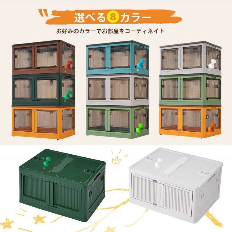 収納ボックス 5面開き 折りたたみ 3 クリア+ホワイト クリア+ライトグリーン クリア+ブルー クリア+イエロー クリア+ブラウン グリーン ブラウン+グリーン+イエロー 1個 2個 4個