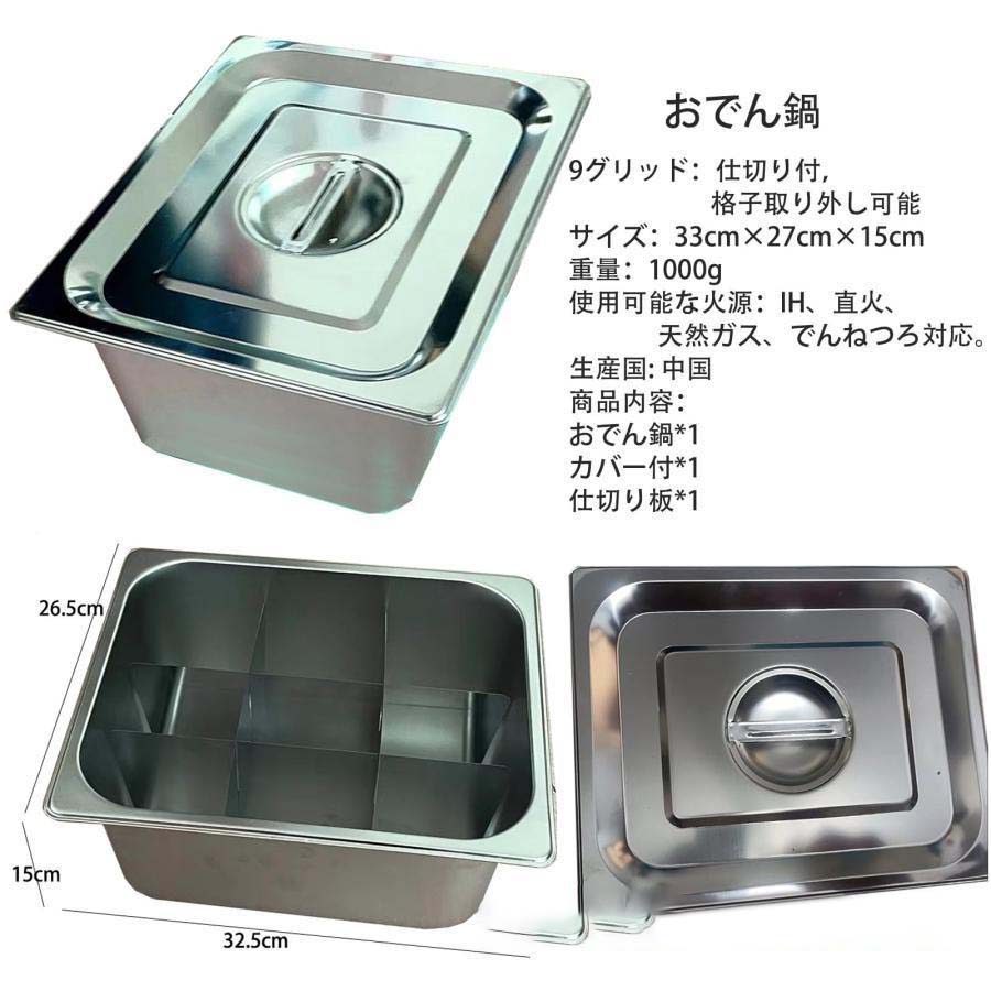 おでん鍋 IH対応 角 仕切り鍋 業務 おでん鍋+蓋+仕切り おでん鍋ハンドル付き+蓋+仕切り