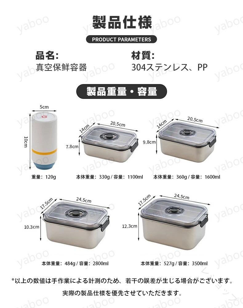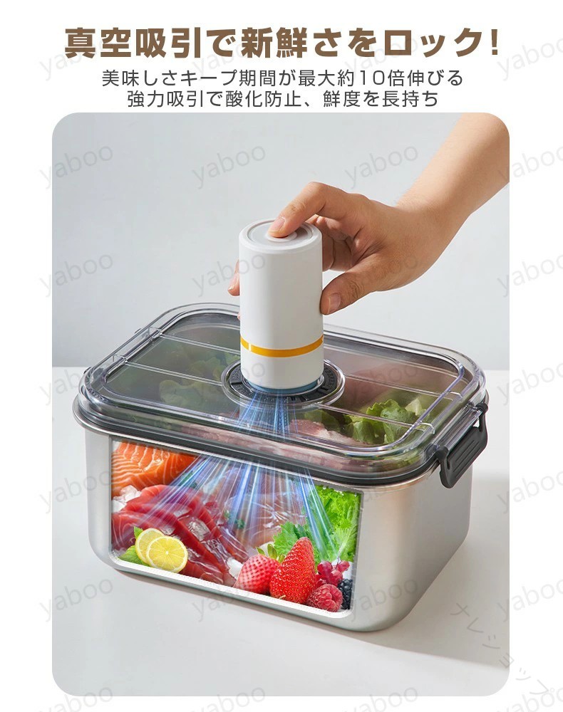 密閉 保存 容器 真空 キャニスター 304 ステンレス 密封 食材 業務用 収納 ケース レンジ 対応 野菜 果物 冷蔵庫 整理 ボ 調味料