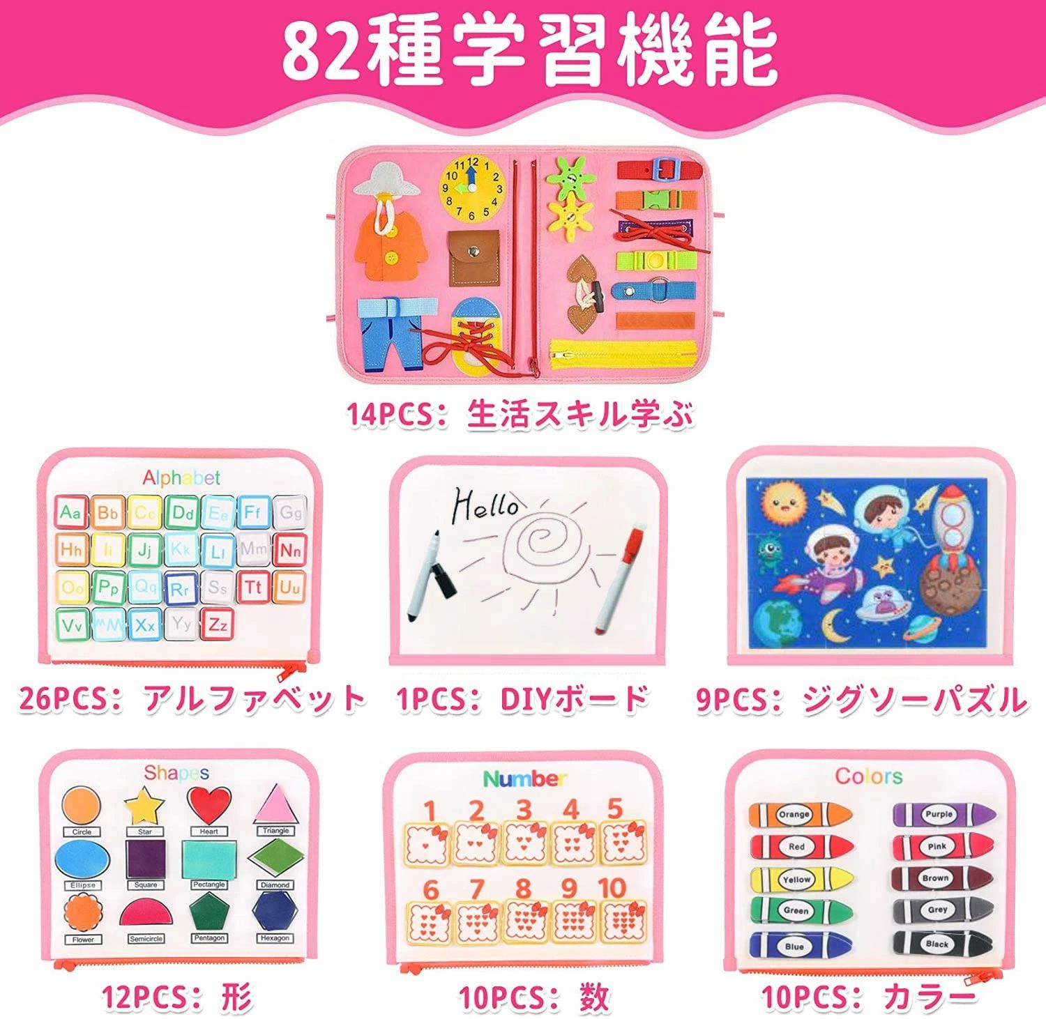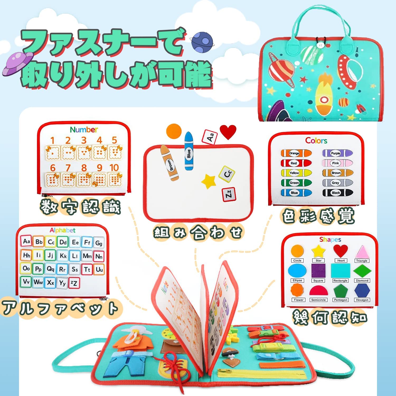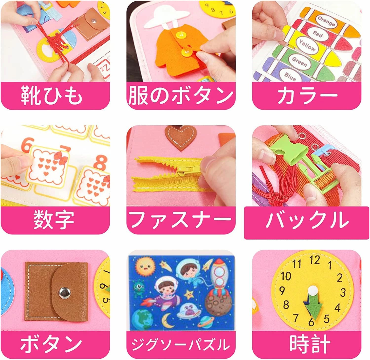 モンテッソーリ ビジーボード おもちゃ グリーン(宇宙柄) ピンク(宇宙柄) ブルー(宇宙柄) 【新色】ピンク(海の世界) 【新色】ライトグリーン(動物柄) 【新色】桃色(人魚) 【新色】パープル(お姫様) 【新色】ブルー(恐竜柄) 【新色】紫色(人魚)