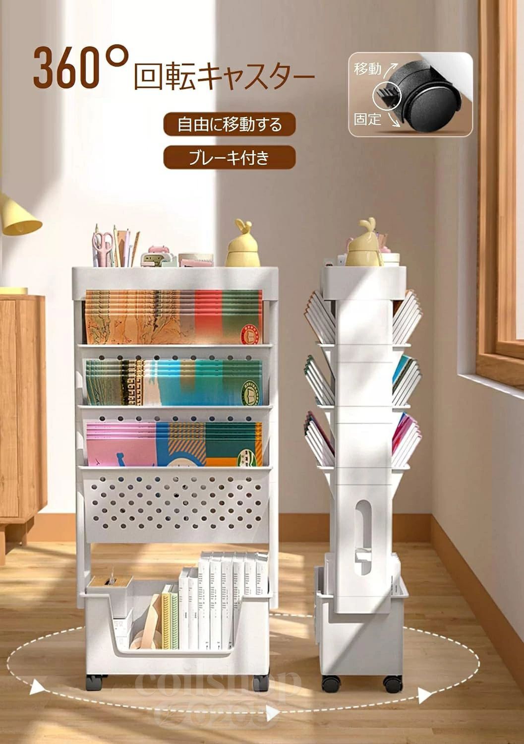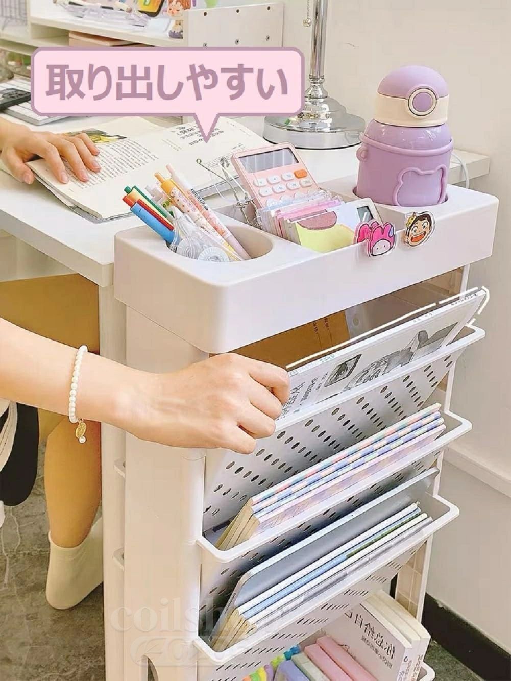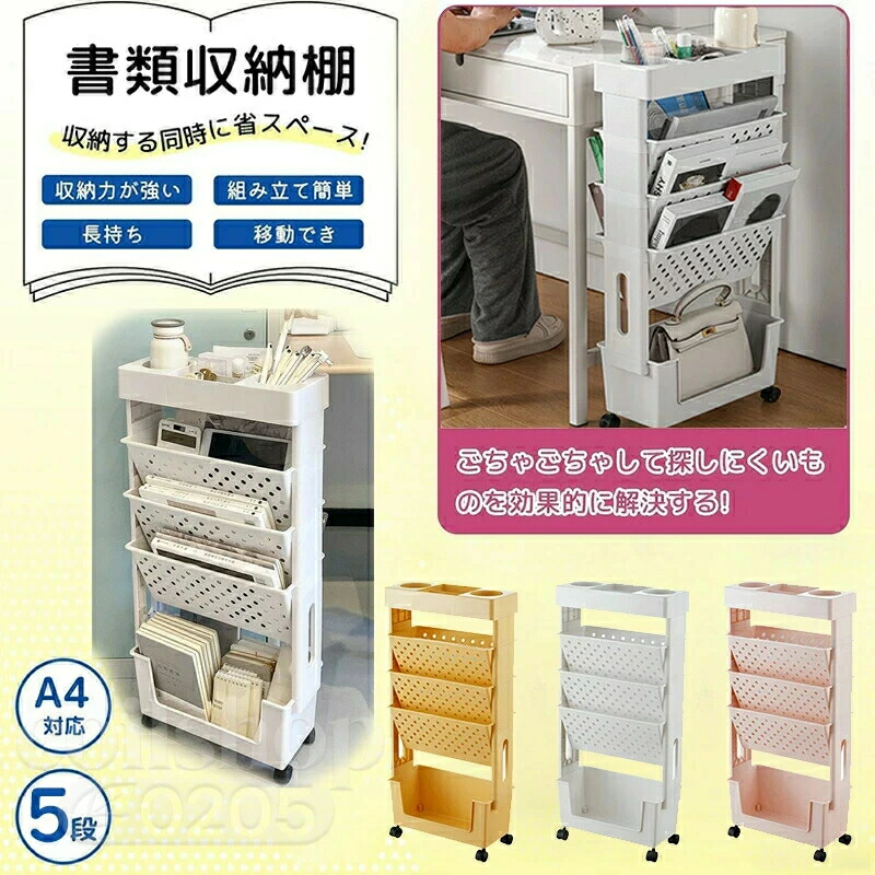 本棚 書類棚 5段 書類ワゴン デスク 日用品雑貨 文房具 手芸 続々登場 ホワイト グリーン ピンク イエロー