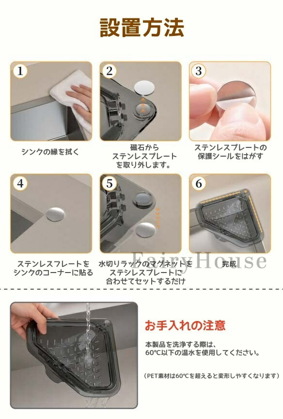 三角水切りカゴマグネット固定式 三角コ 水まわり用品 三角コーナー 新登場! 1点 2点 3点