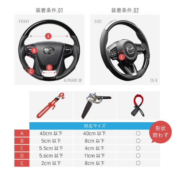 ハンドルロック ステアリングロック 盗 ブラック レッド イエロー ブルー