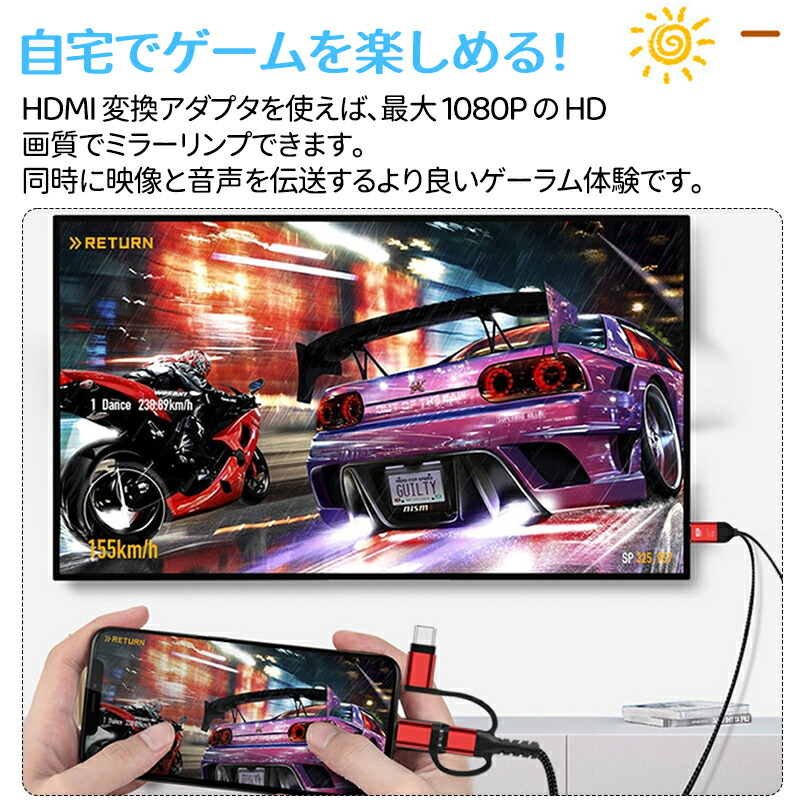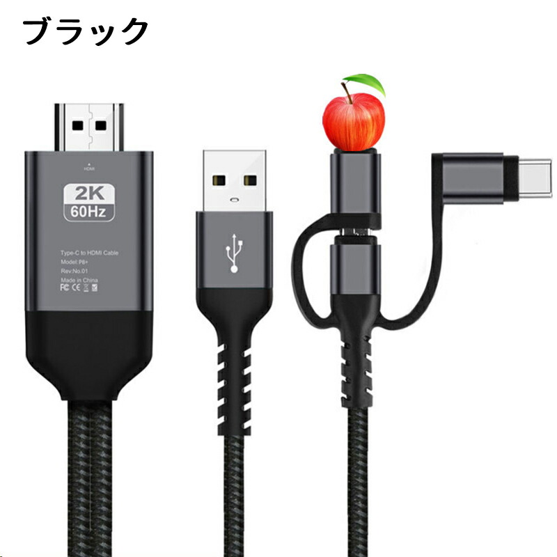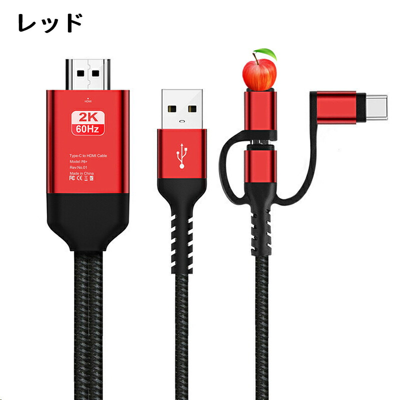 iphoneミラーリング iPhone スマートフォン タブレット用ケーブル 変換アダプター 新作 ブラック レッド