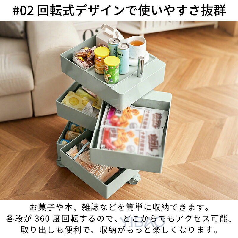 ワゴン キャスター付き おしゃれ 回転 グリーン イエロー オレンジ ホワイト カーキ