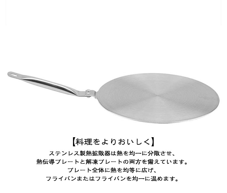 【料理をよりおいしく】ステンレス製熱拡散器は熱を均一に分散させ、熱伝導プレートと解凍プレートの両方を備えています。プレート全体に熱を均等に広げ、フライパンまたはフライパンを均一に温めます。