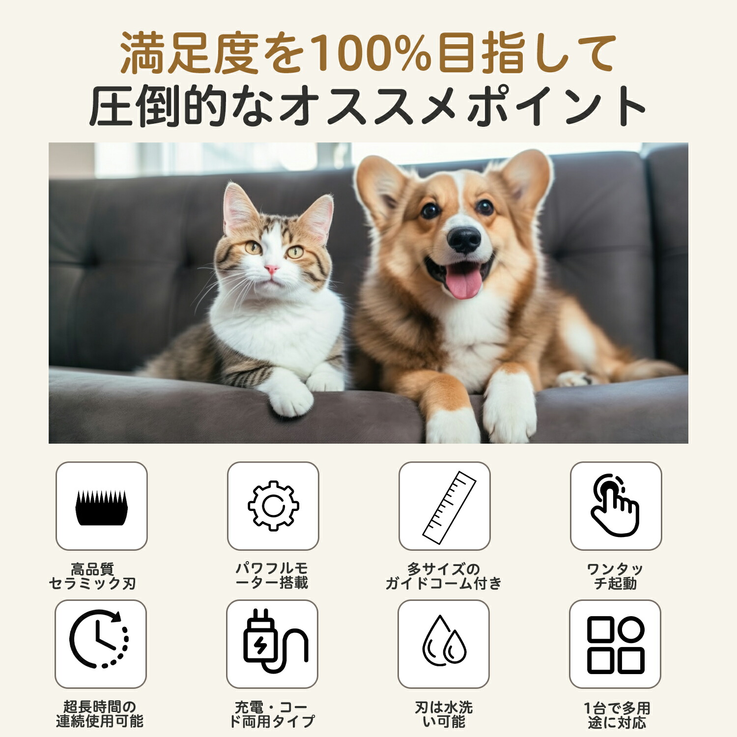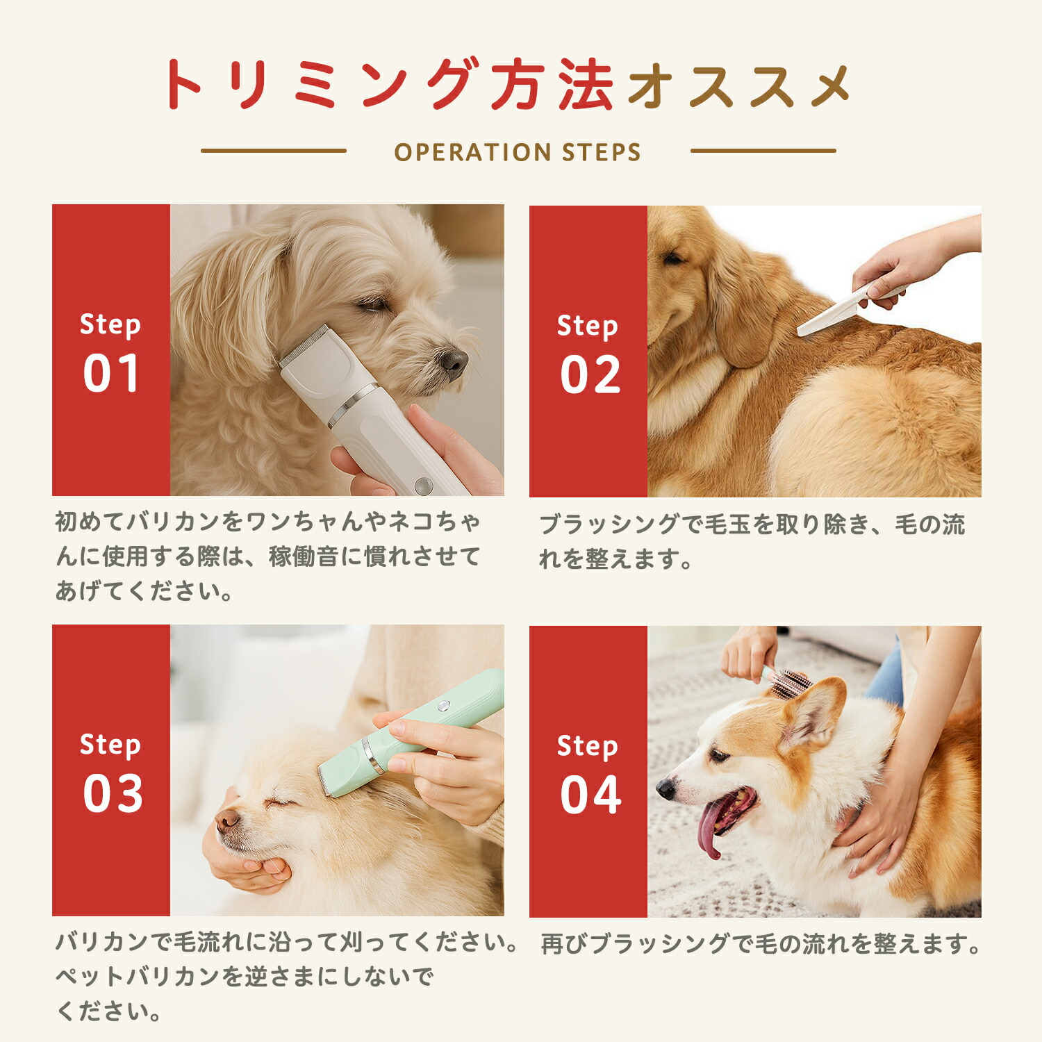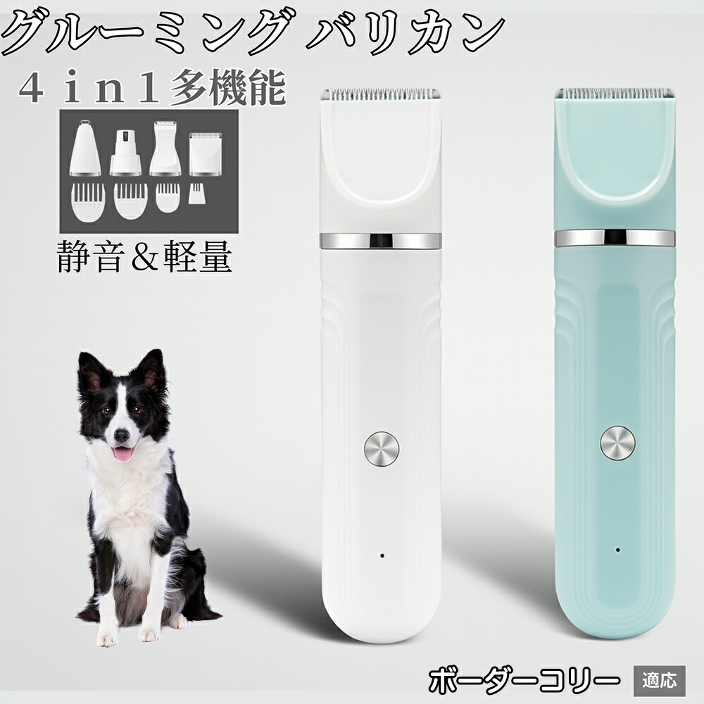 4in1 ペットバリカン 犬猫対応 充電式コードレス 静音 低振動 軽量 丸洗いOK セラミック刃 替刃付き USB充電 初心者向け 全身ケア グルーミングセット ボーダーコリー犬 おうちトリミング
