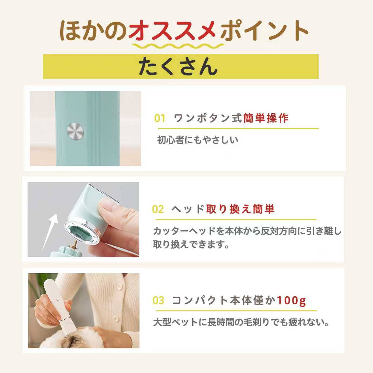 4in1 ペットバリカン 犬猫対応 充 グリーン ホワイト