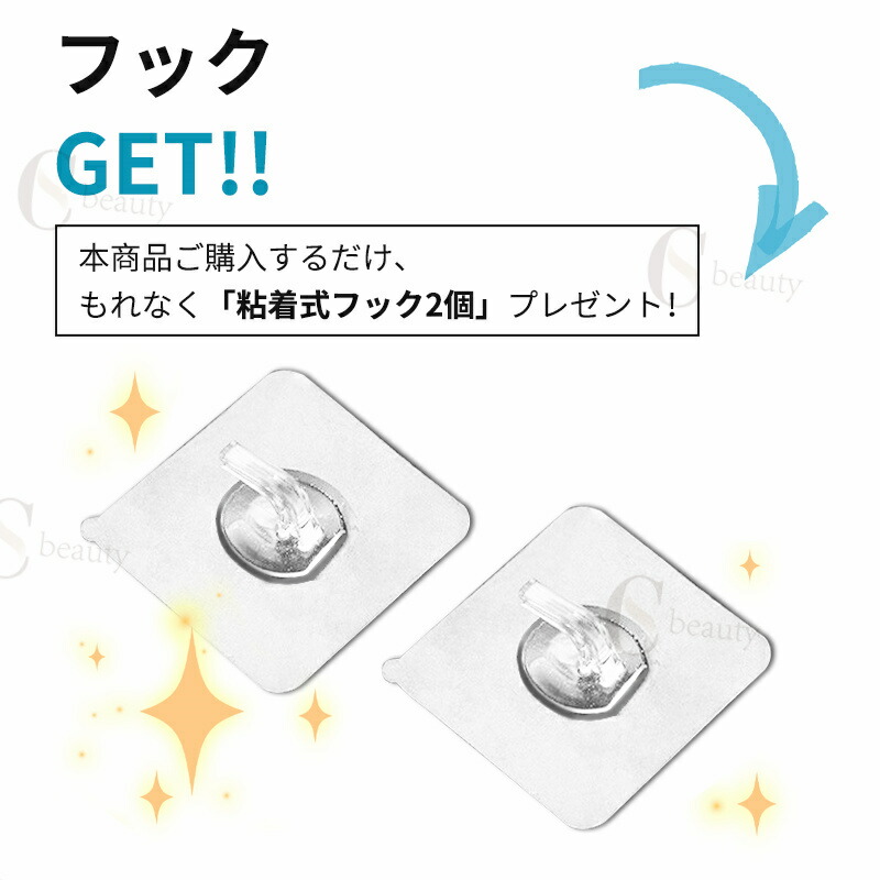 壁掛けフックと合わせて、場所を取らずスッキリ収納、洗濯機横や璧に掛けが出来るので便利。