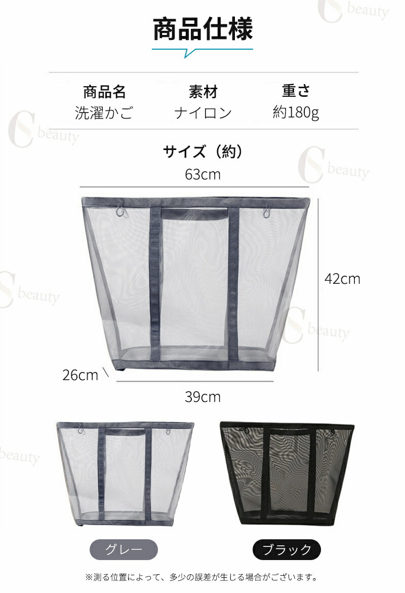 フック付き 洗濯かご 折りたたみ スリ グレー ブラック