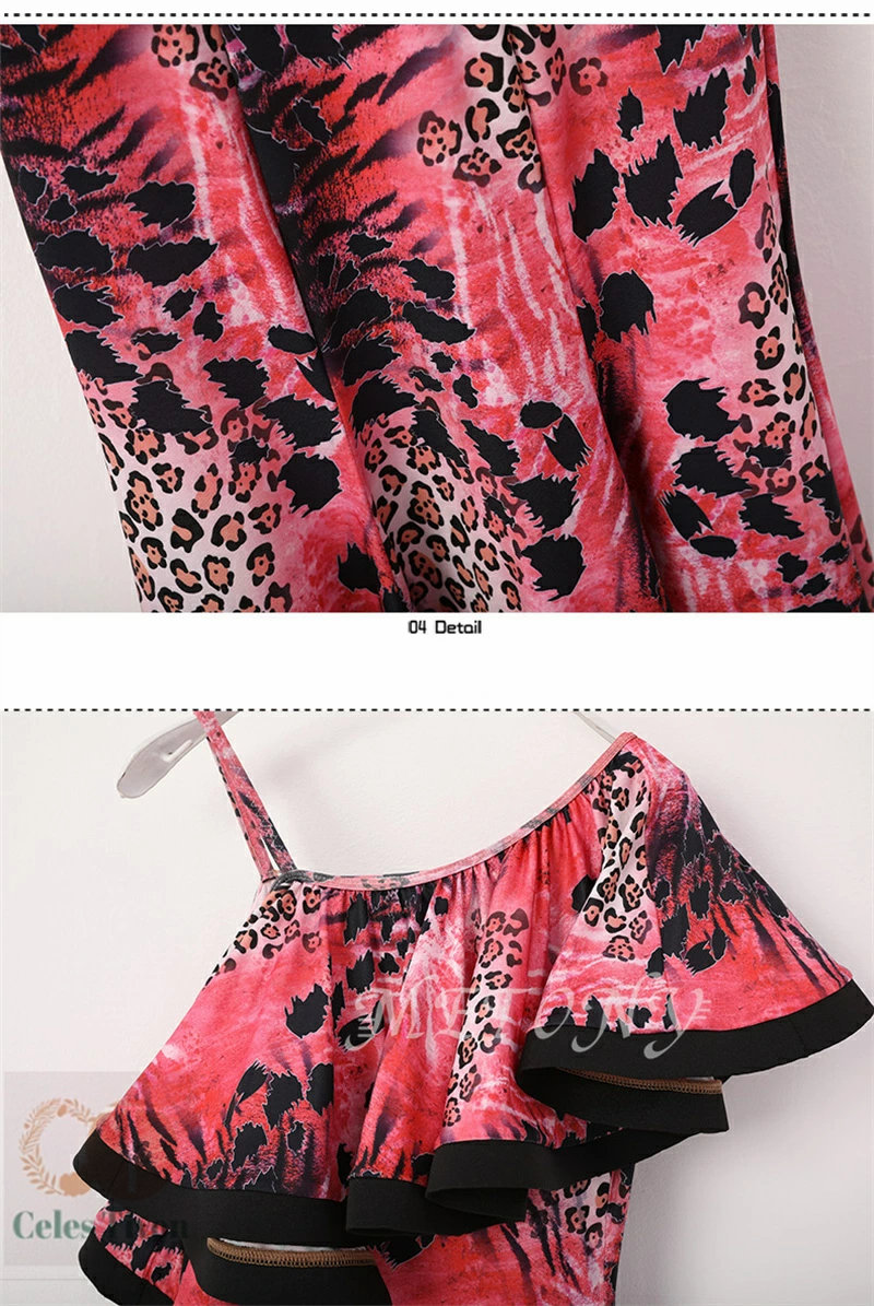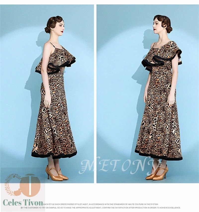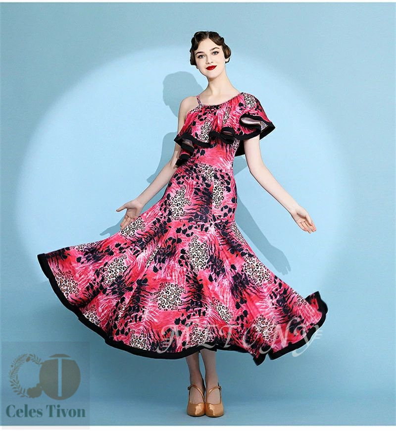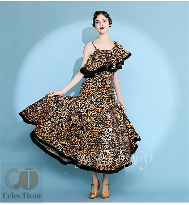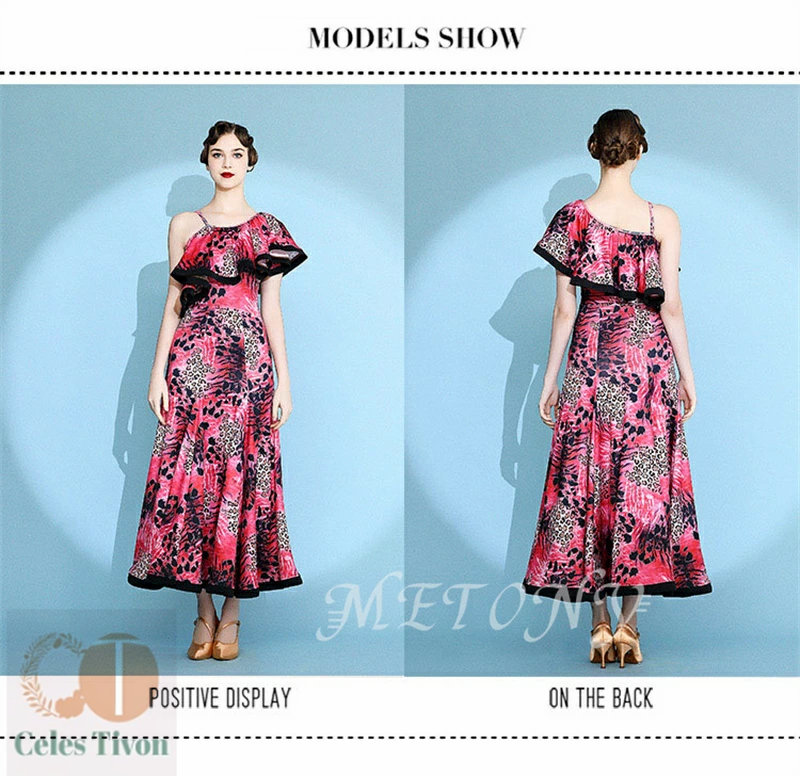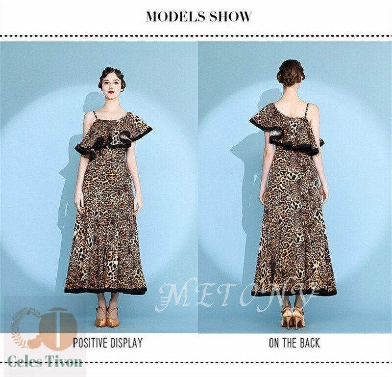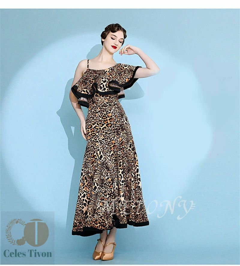 レディース ダンスドレス ロングドレス 体操 ダンス 社交ダンス ウェア 通販 赤ヒョウ柄 黄ヒョウ柄 S M L XL 2XL