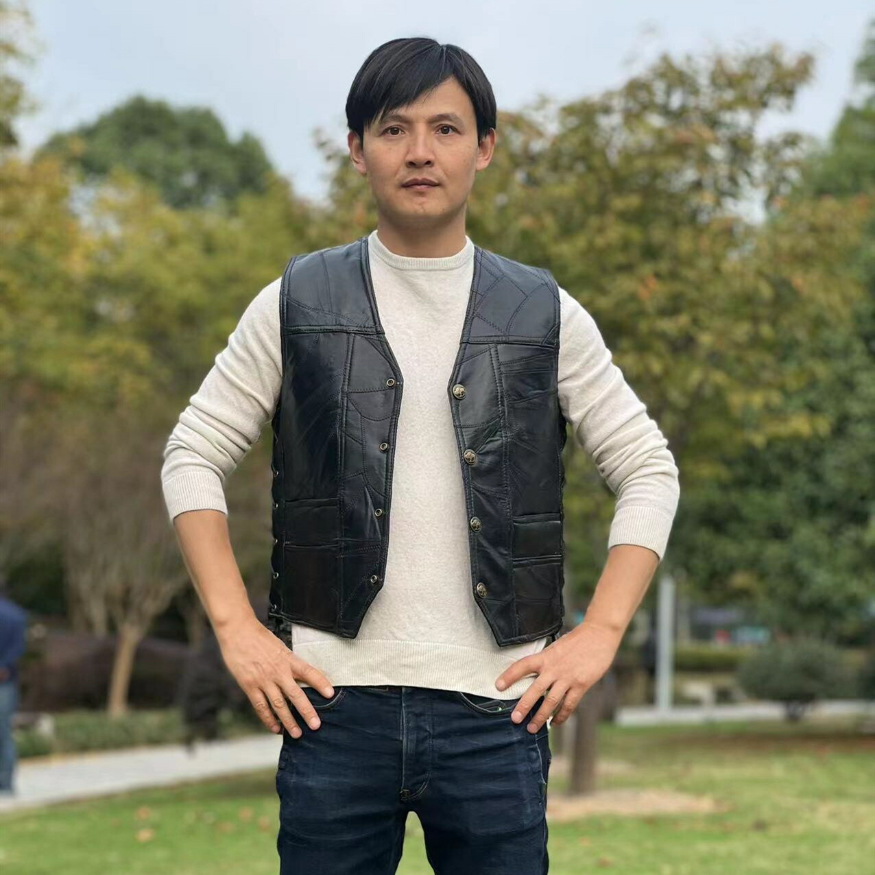 ライダースベストレザーお洒落ファッションクラシックベスト本革ベストバイク用バイク革ベストパンク風ライダーメンズバイクウェア革ベスト