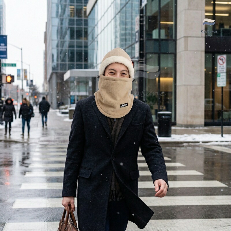 防寒 ニット帽 耳あて 顔カバー 付き バッグ 小物 ブランド雑貨 通販 カーキ ブラック ダークグレー ライトグレー オフホワイト