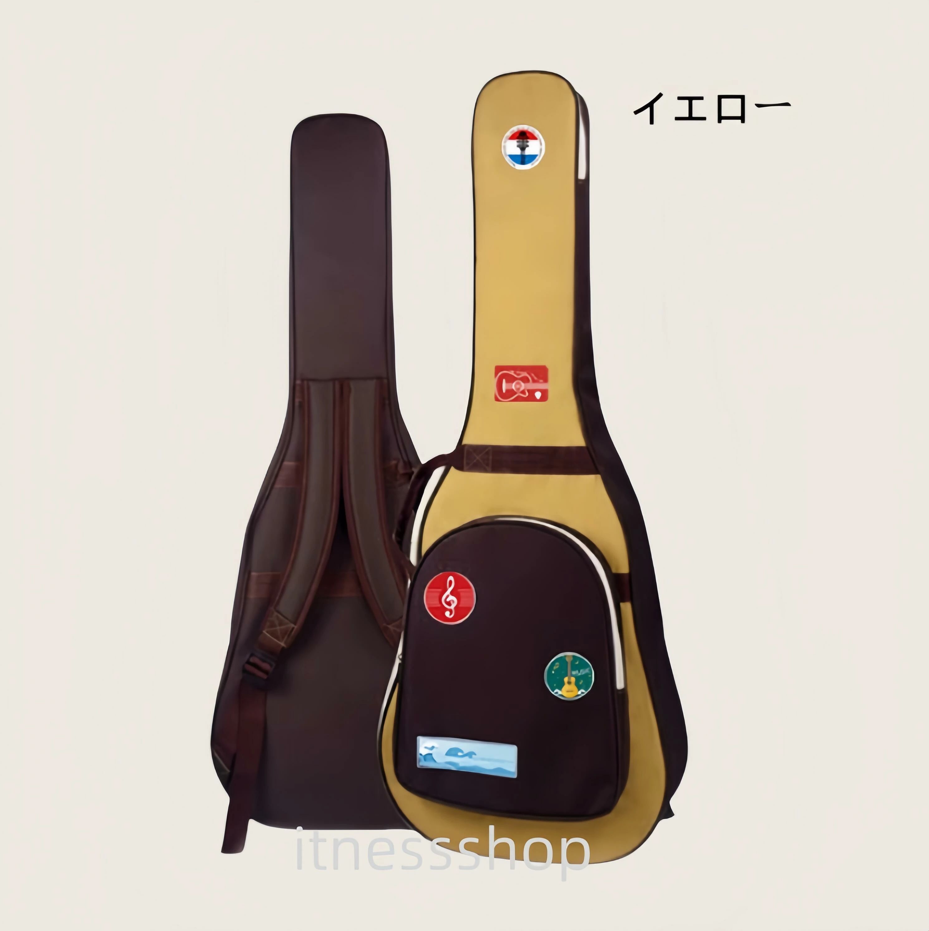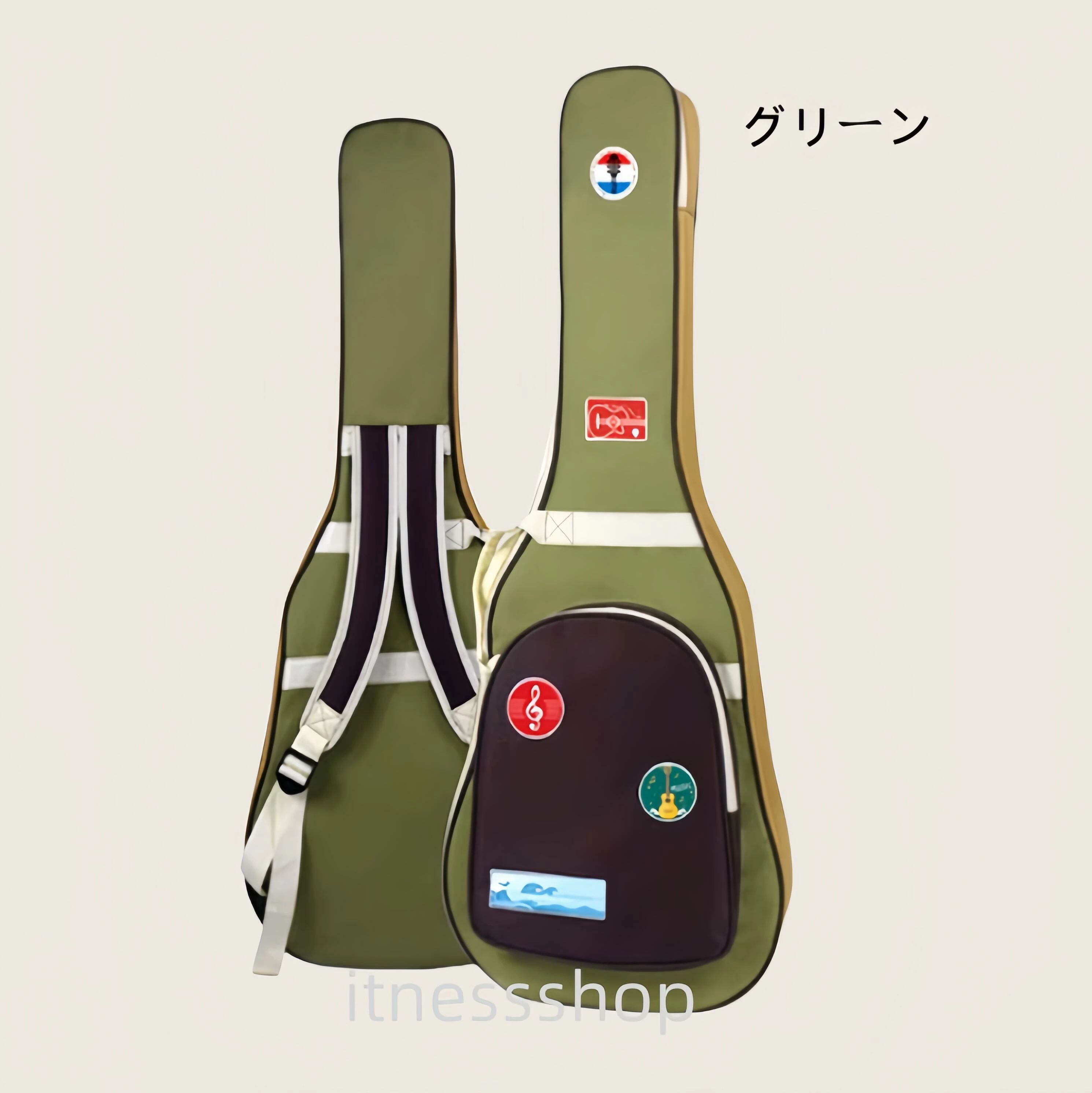 ギフト アコースティックギターケース柄 グリーン ホワイト ブラック イエロー コーヒー