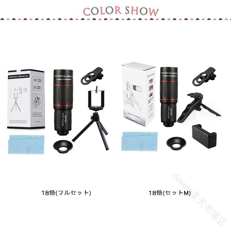 スマホ用望遠レンズ 18倍 フルセット スマートフォン タブレット 早い者勝ち 18倍(フルセット) 18倍(セットM)