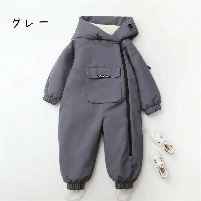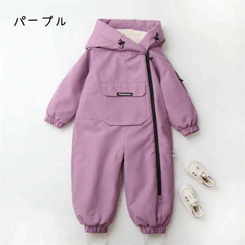 雪遊 ジャンプスーツ プラスベルベット アウトドア ウェア キッズ ジュニア用ウェア 続々登場 浅黄色 パープル ダークブラウン グレー イエロー 90cm 100cm 110cm 120cm