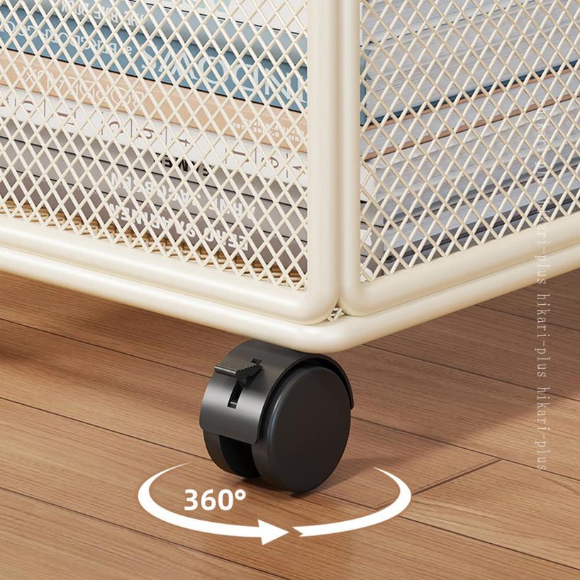 本棚は鉄製では耐荷重に優れ、変形しにくく丈夫で、完成品出荷で、四つのキャスターを簡単に取り付けるだけです。