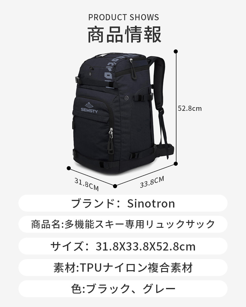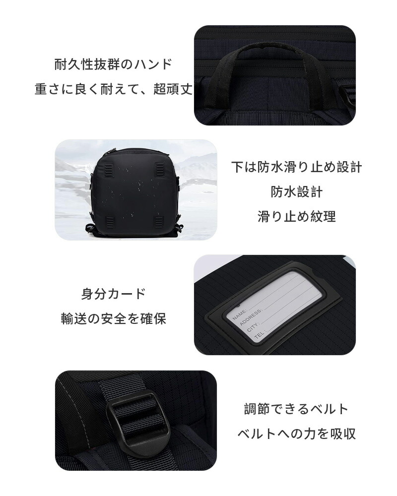 スノーボード バックパック スキー ブーツバッグ 大型スキーヘルメット バッグ 大容量 スキーブーツバッグ 防水フルパッド ブーツトラベルバックパック アカウント ヘルメットバッグ付き