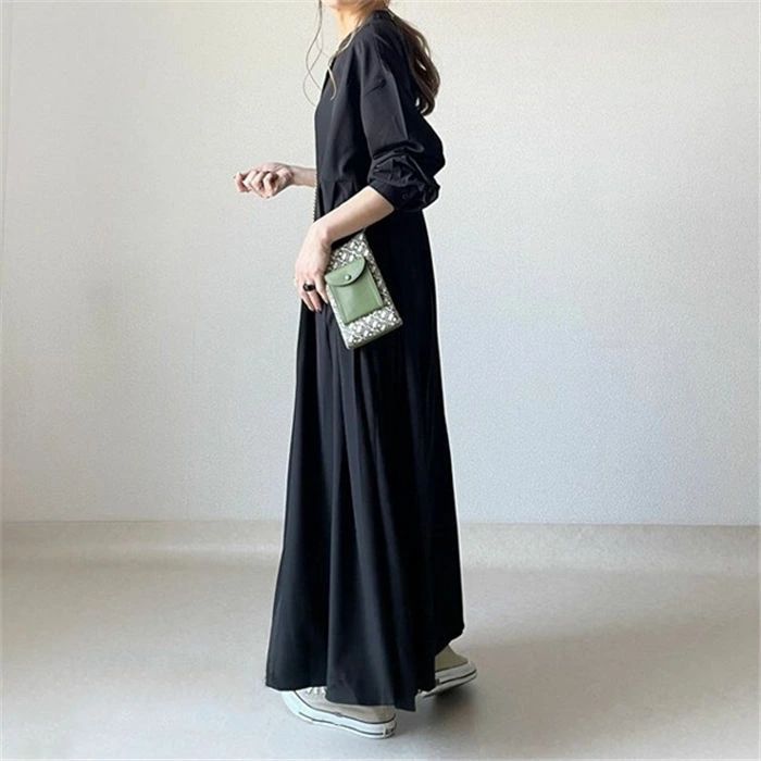 着痩せ ロングワンピース 大きいサイズ 黒 コーヒー(NEW) グレー(NEW) S M L