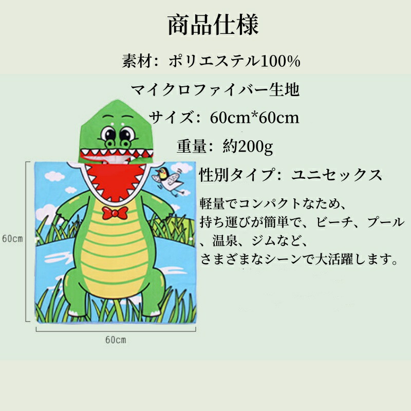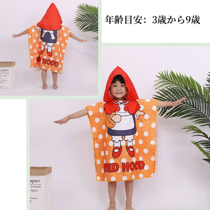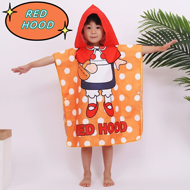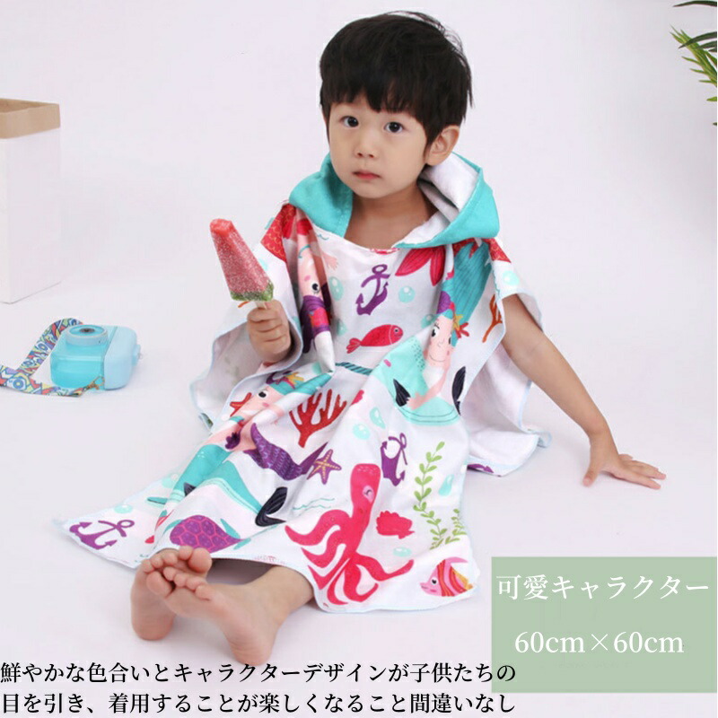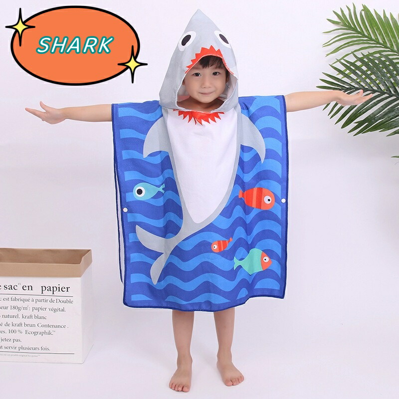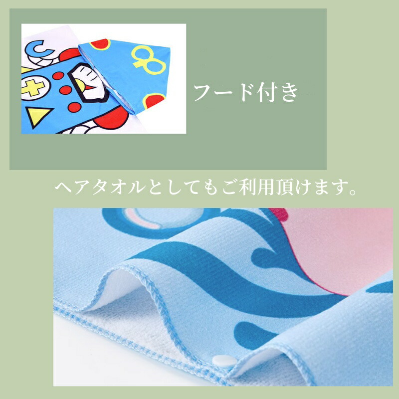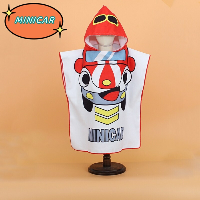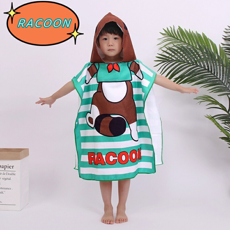 フード付き キッズラップタオル 60× RACOON RED HOOD FOOTBALL SHARK ROBOT MINICAR RABBIT 海の生物
