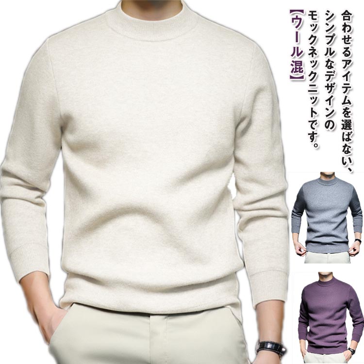 ニット モックネック 暖かい ニットプ メンズファッション 豊富な品揃え ホワイト パープル ネイビー アイボリー ワインレッド ブラック ライトグレー ダークグレー ベージュ ブルー ブラウン M L XL 2XL 3XL 4XL