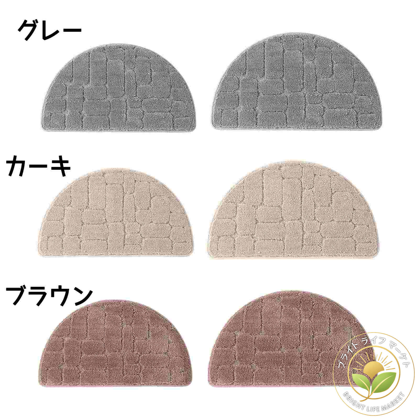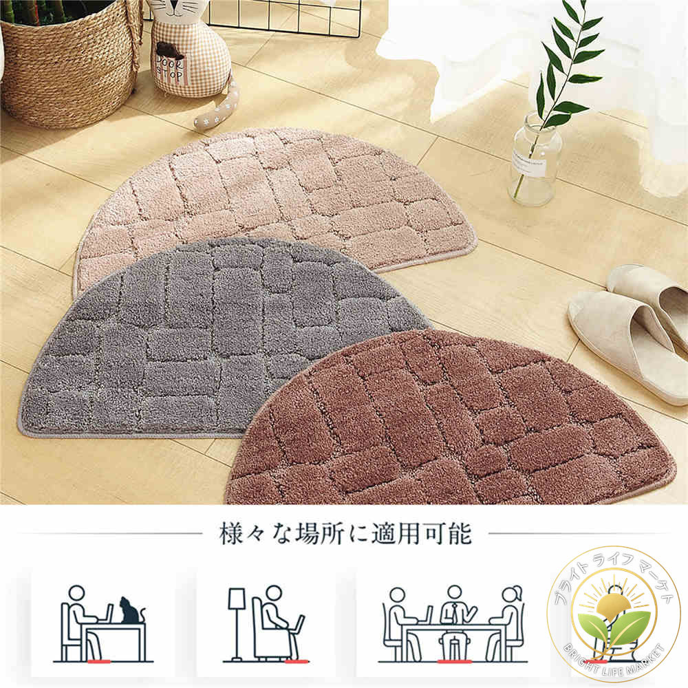玄関マット バスマット 半円 室内丸洗 日用品雑貨 文房具 手芸 豊富 グレー カーキ ブラウン 40×68cm 50×80cm