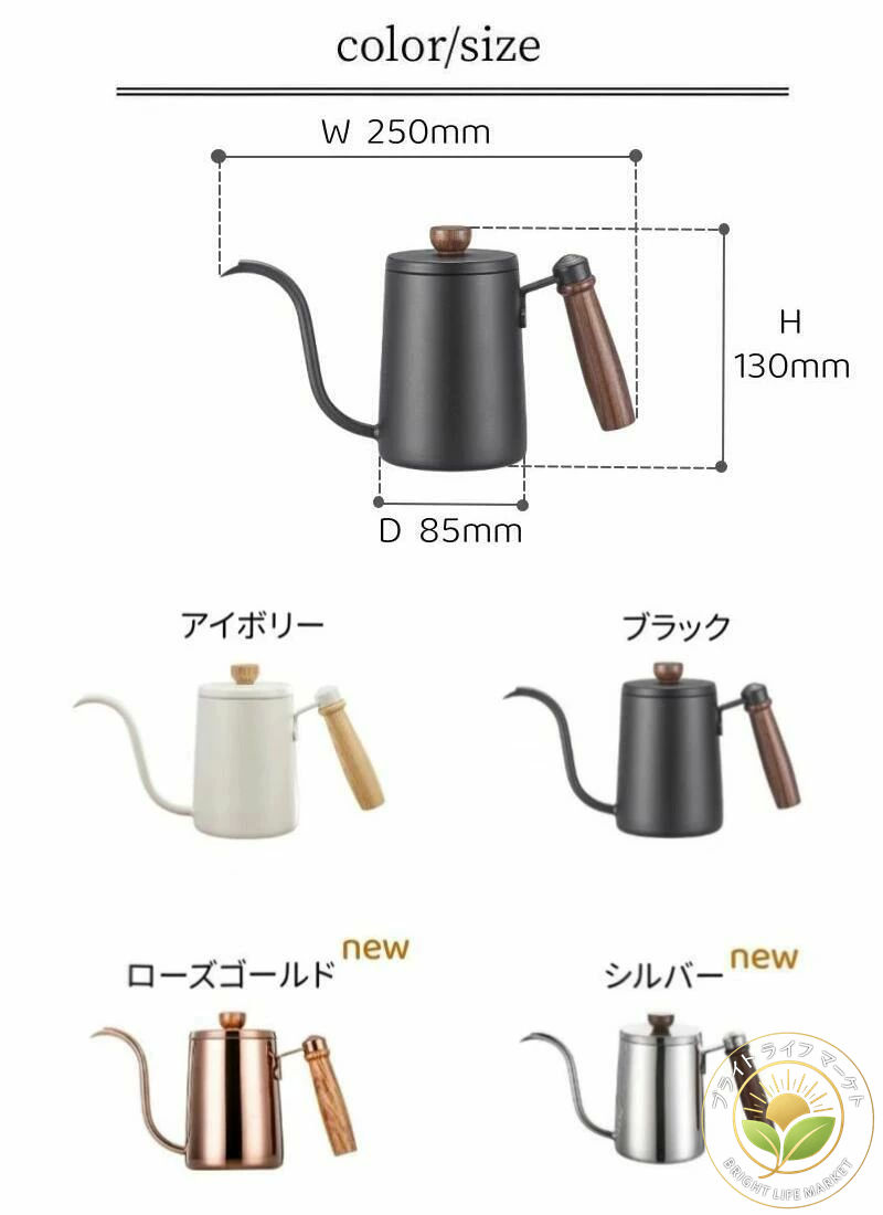 コーヒーポット コーヒードリップポット コーヒー お茶用品 ドリップポット 新登場! ブラック アイボリー ローズゴールド シルバー