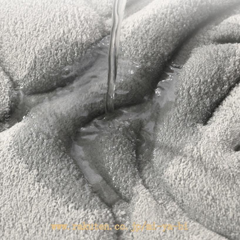 この床敷くマットは吸水性や速乾性に優れた加工技術を使用し、水分をしっかり吸い取り、足下サラサラで滑りにくくなるとともに、フワフワで転倒を防止します(子供もお年寄りも安心で使用)。