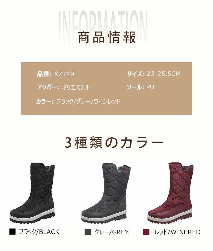 防 防寒 防水 冬用 ミドル丈秋冬 ウ レディース靴 スノーシューズ 新作 ブラック グレー 23cm 23.5cm 24cm 24.5cm 25cm 25.5cm