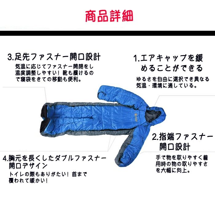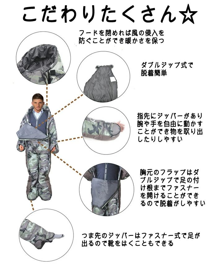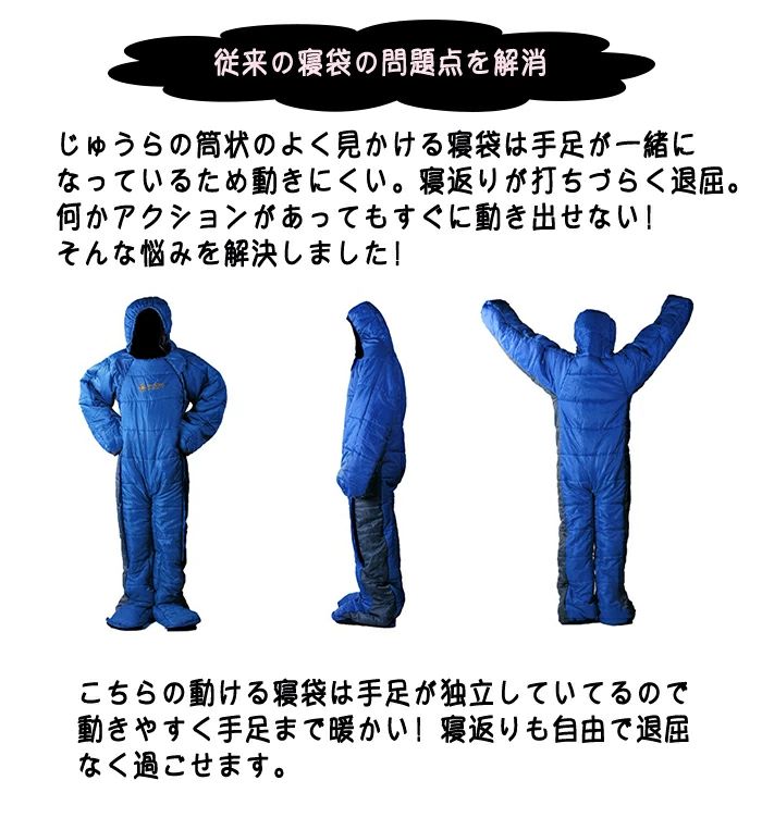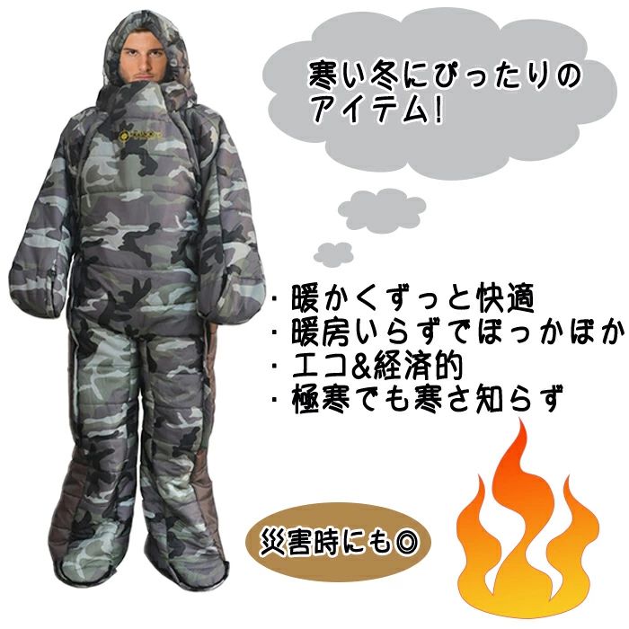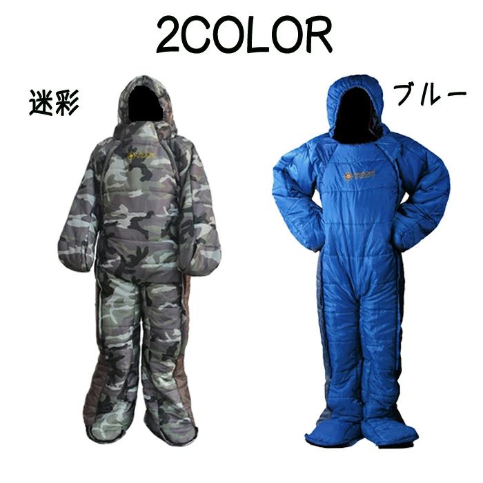 寝袋 寝袋人型 動ける寝袋 着る寝袋 スポーツ アウトドア 続々登場 迷彩 ブルー M L XL