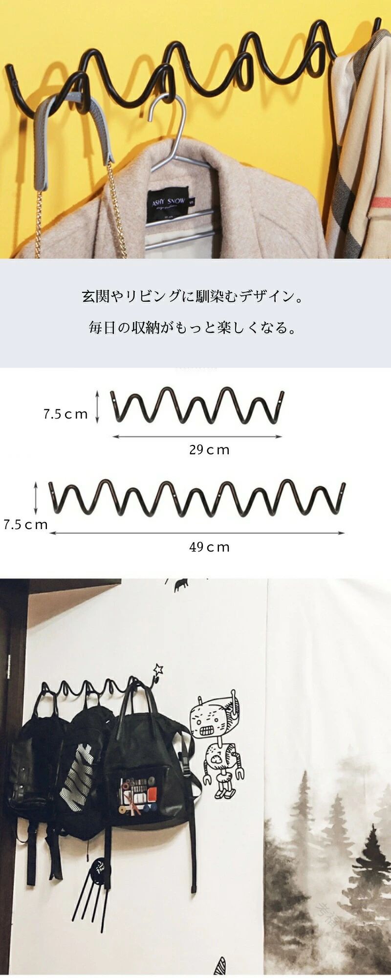 ウェーブデザイン 5連 アイアンホルダー 北欧風 リビ ウォールフック 壁掛けコートラック シンプルスタイル 3連 アイアンフック