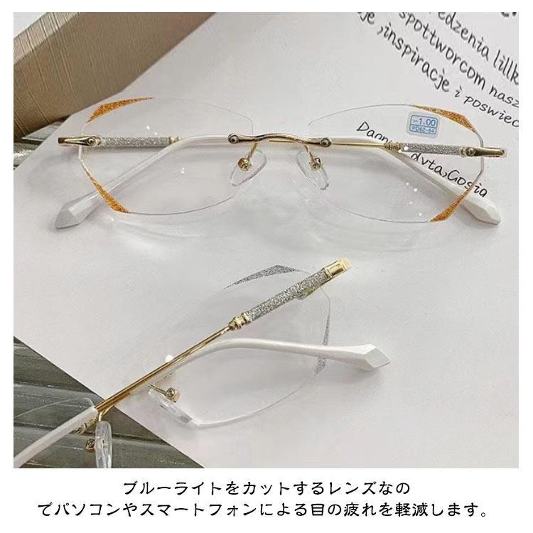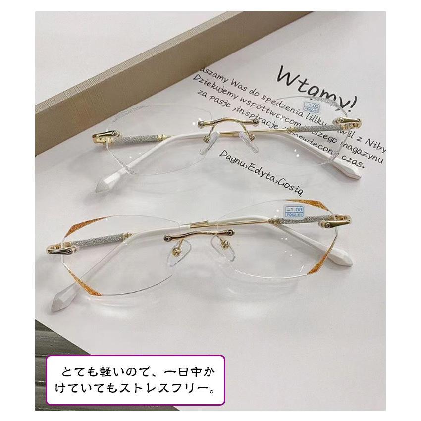 フチなし 女性 ース付き シニアグラス 軽い ふちなし PCメガネ ブルーライトカット リーディンググラス コンパク おしゃれ 軽量