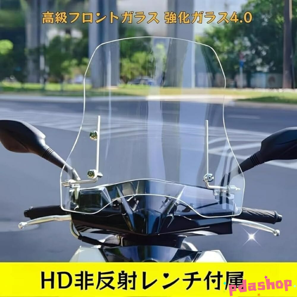 スクーター 風防 ウインドスクリーン 原付用 ウインドシールド 風除け 虫除け 雨除け 簡単取付 汎用 オートバイ対応 透明度99% 安定性 バイク