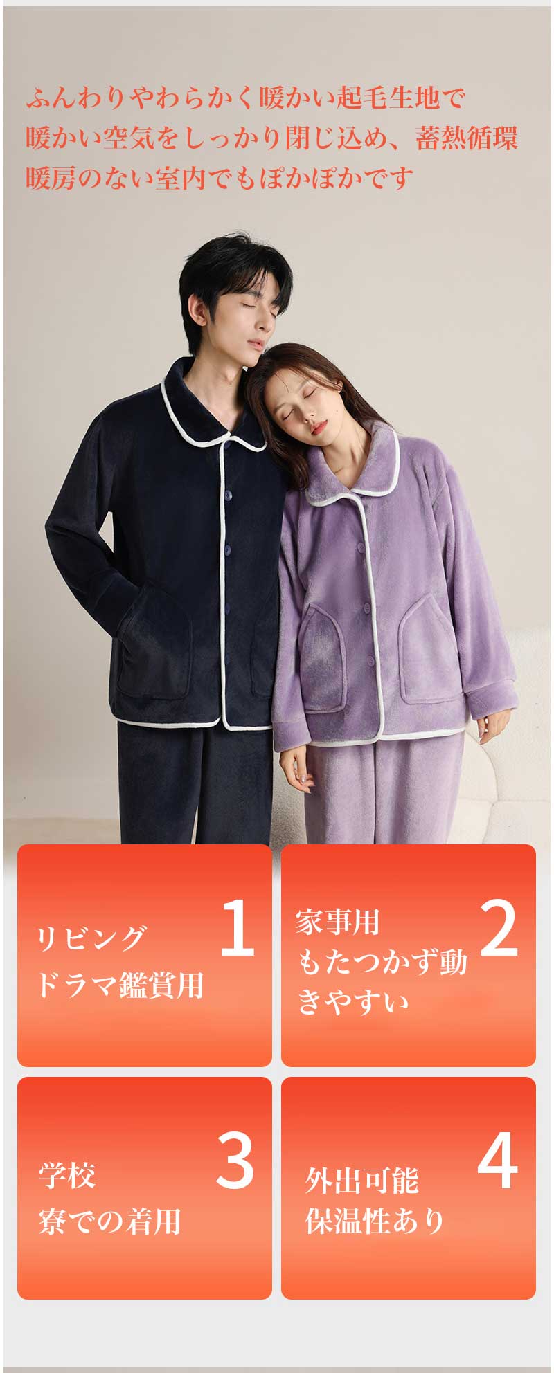 メンズ レディース あったかパジャマ インナー 下着 ナイトウエア 豊富な品揃え ホワイト(女性) パープル(女性) ピンク(女性) グレー(男性) ネイビー(男性) M L XL 2XL
