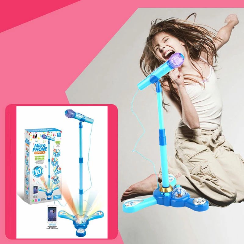 マイク おもちゃ マイクスタンド スタ おもちゃ 電子玩具 キッズ家電 カラオケ 通販 ブルー ピンク