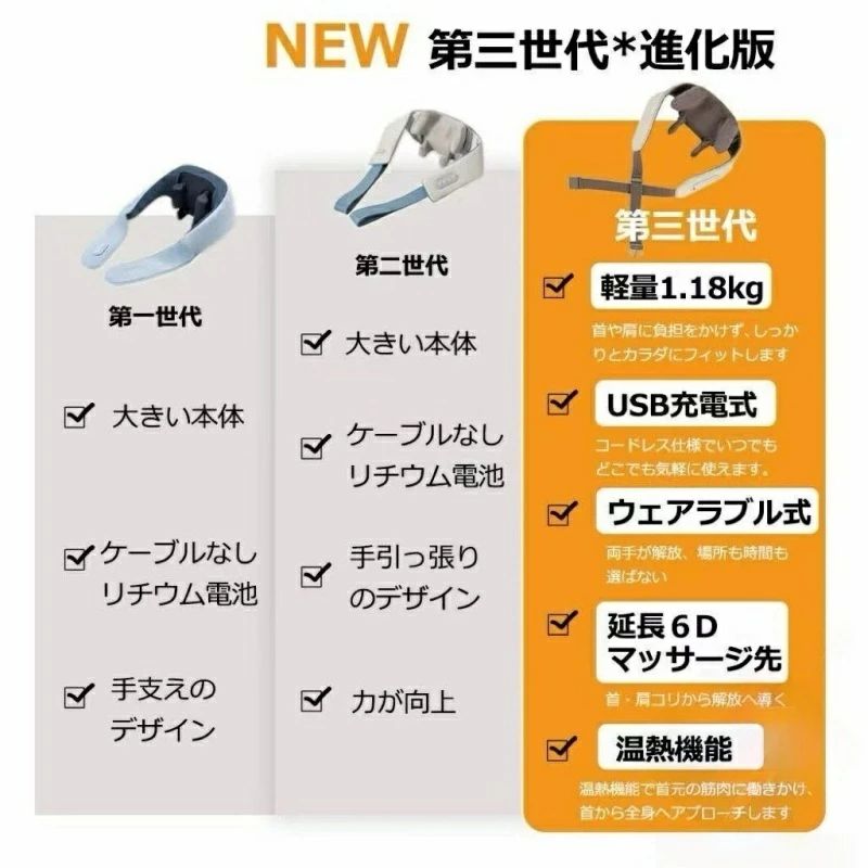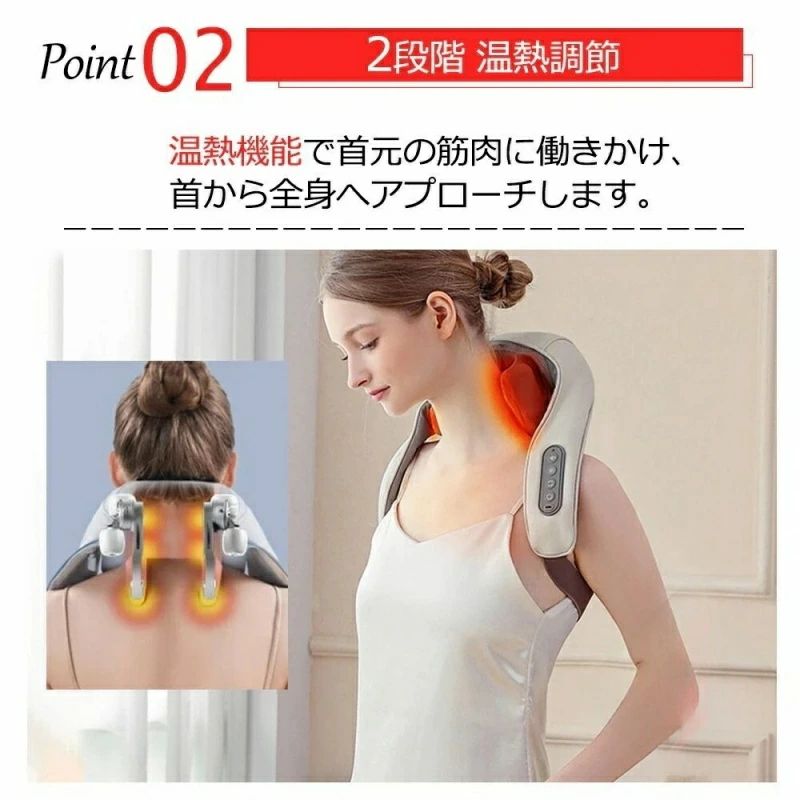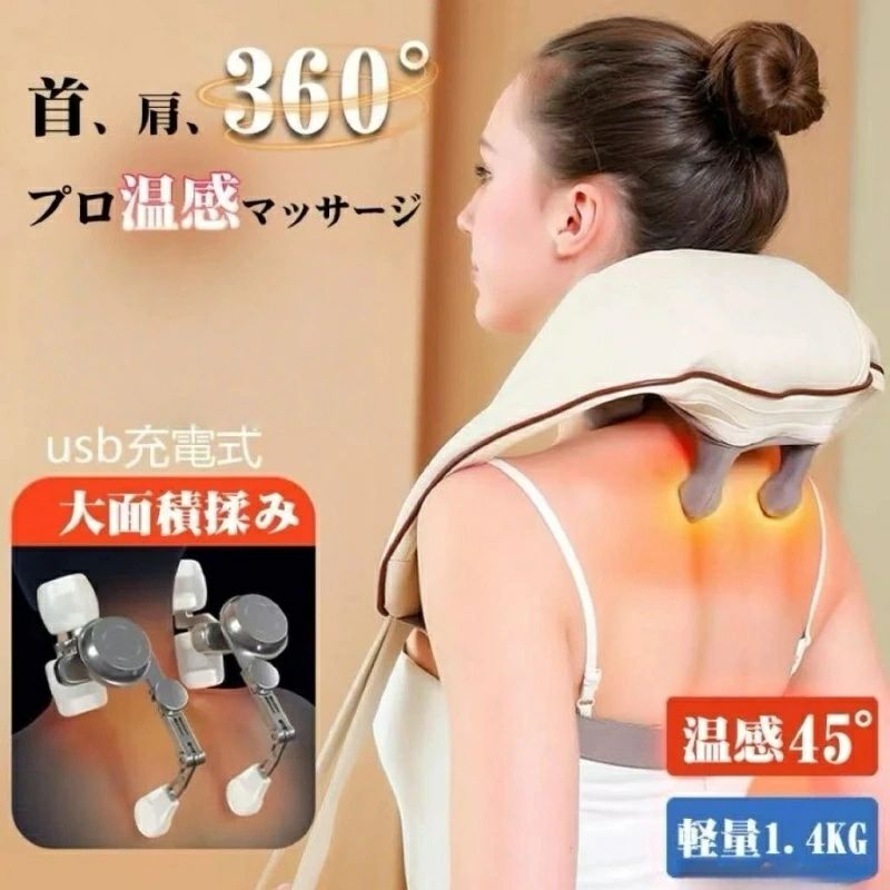 多機能 ネックマッサージャー 小型 軽 ベージュ グレー