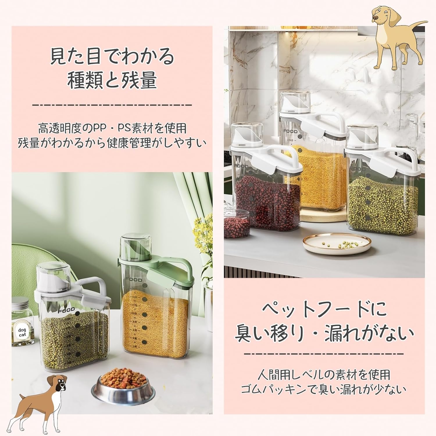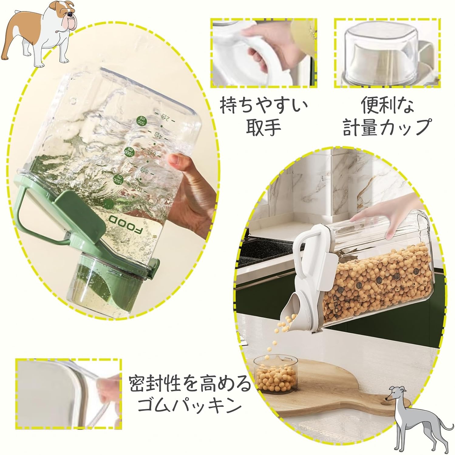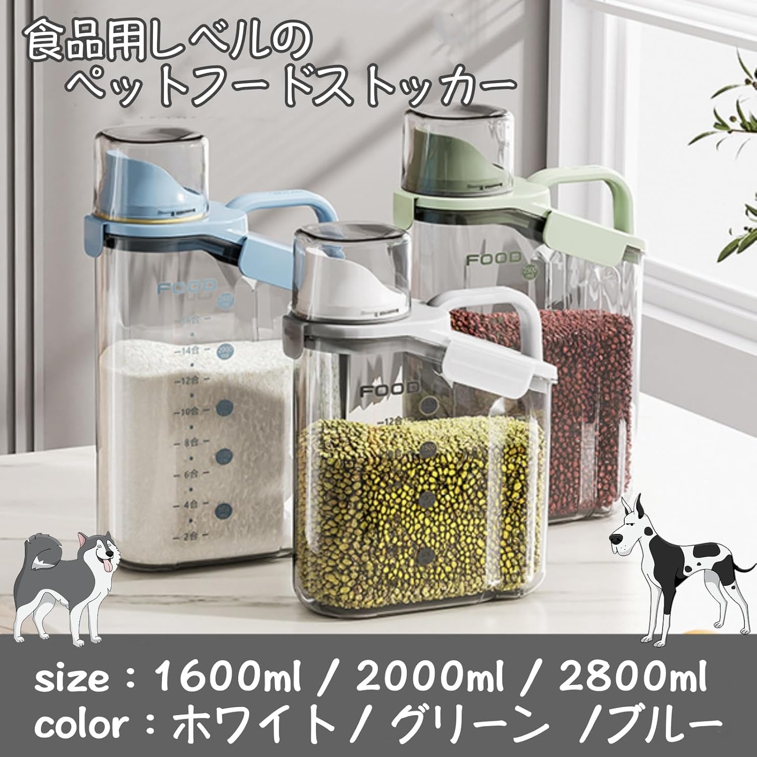 透明ス 貯蔵タンク フード 猫餌 犬 ホワイト ブルー グリーン 1.6L 2.0L 2.8L