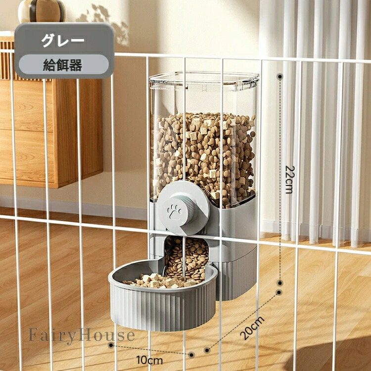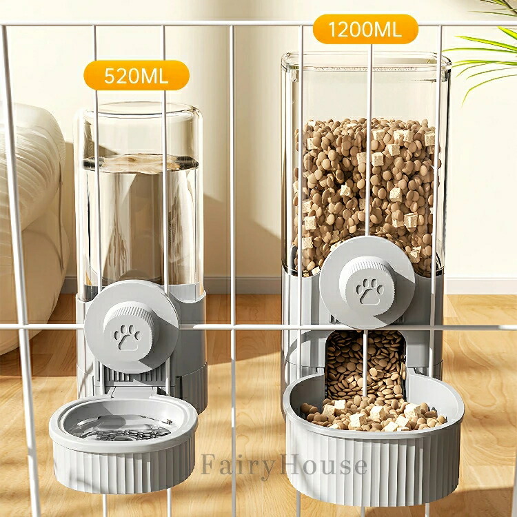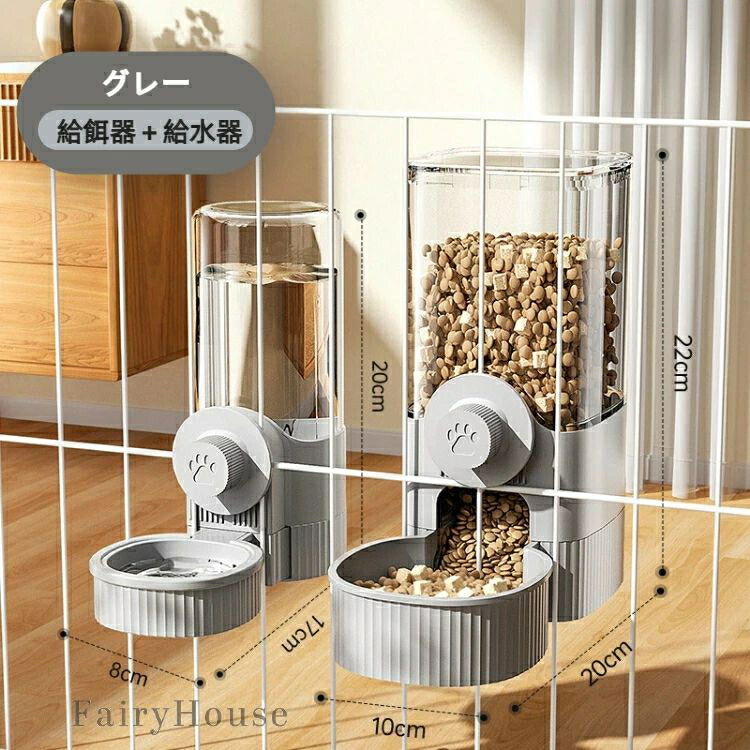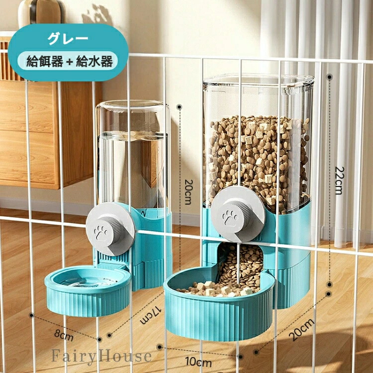ペット用 ケージ取り付け 自動520n グレー ブルー 給水器 給餌器 給餌器+給水器