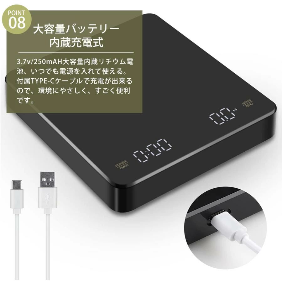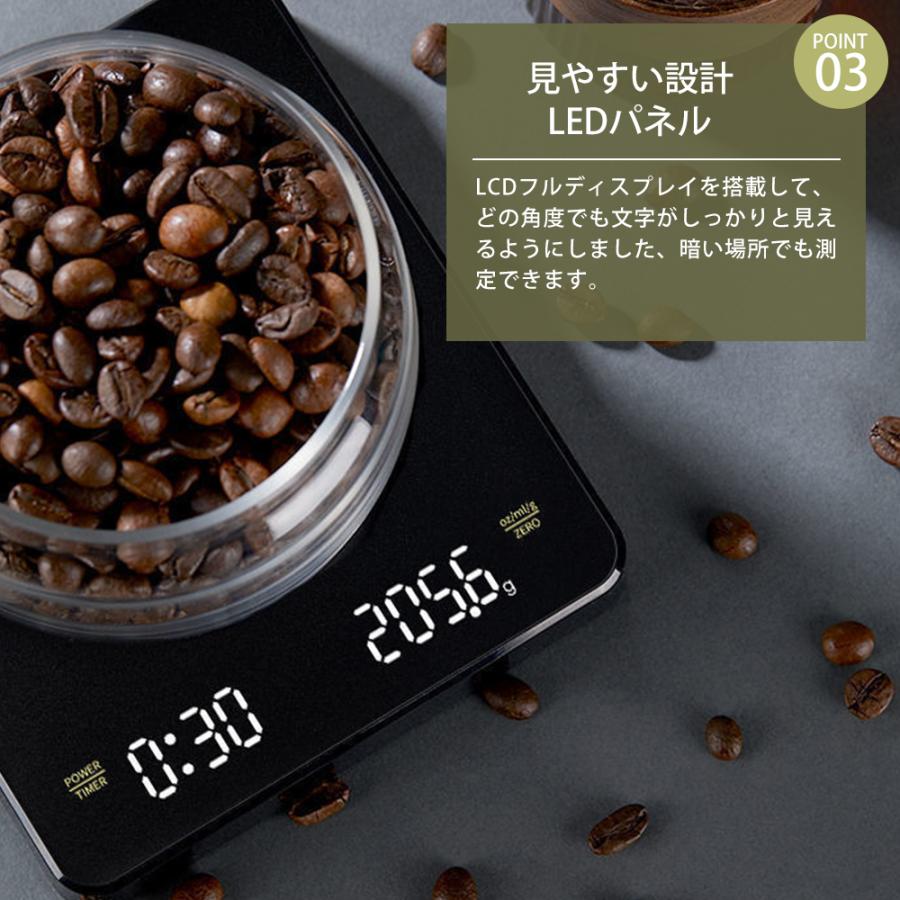 タイムモア コーヒー スケール 0.1g 3kg スケールキッチンスケール タイマー付き