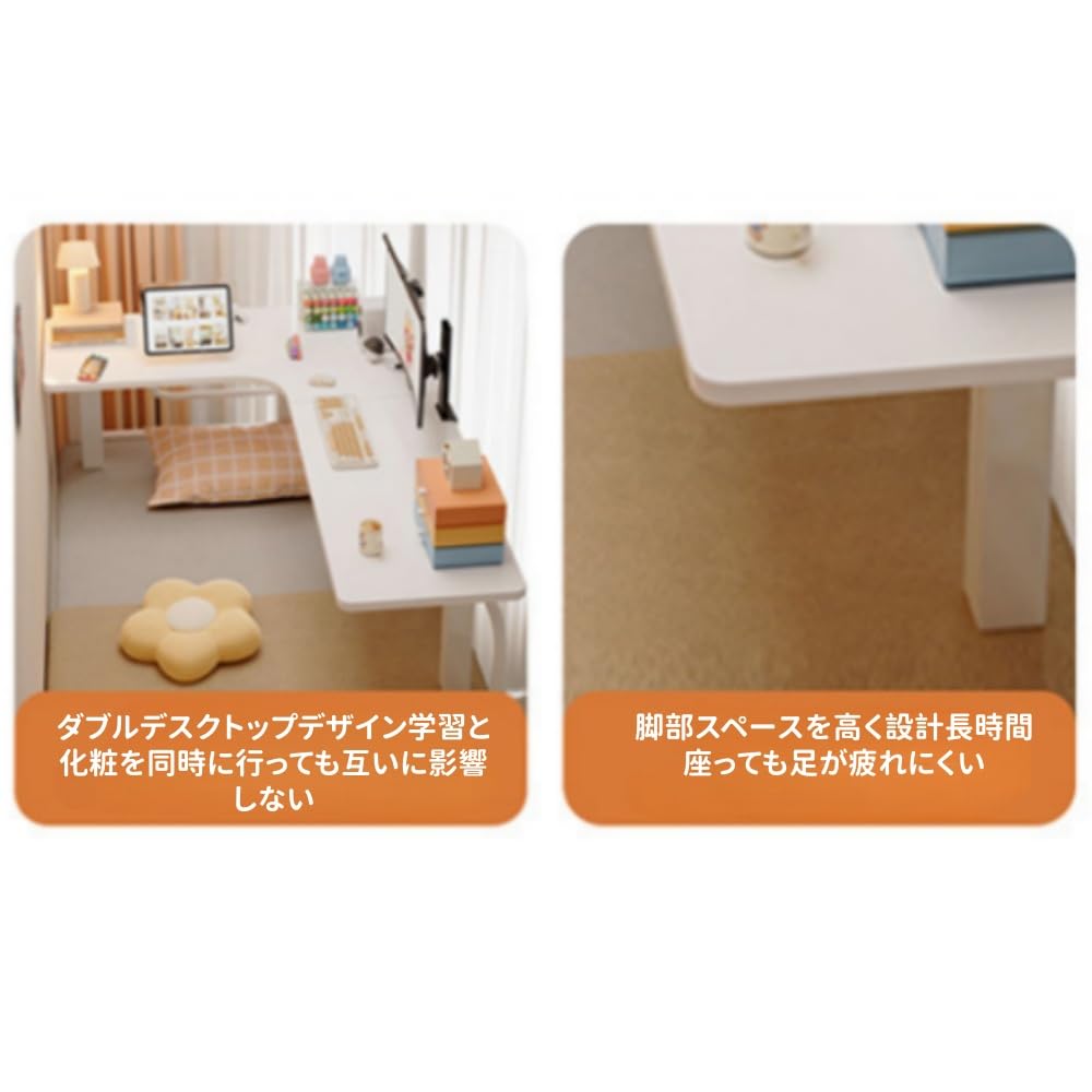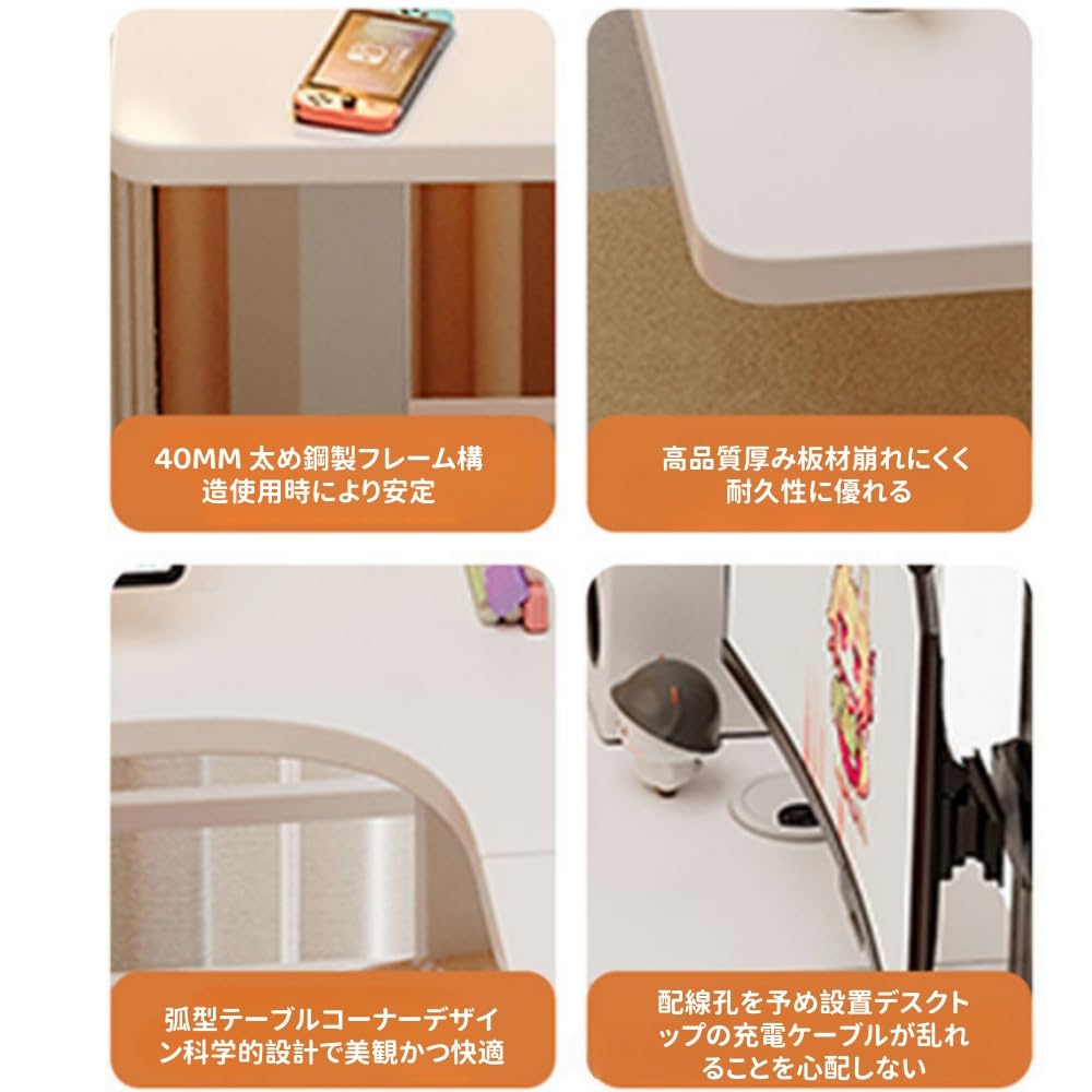 40×40mm の太め金属製テーブル脚と 15mm の厚み板材を採用,結実で耐用性に優れ、日常の使用に十分耐えられます。丸みを帯びたコーナーは衝突の危険を軽減,予備の配線孔でケーブルの乱れを防ぎます。左右 2 タイプの配置から選べ、女子向けの清潔なスタイルや男子向けのゲーム電競スタイルも用意され、多様な生活シーンに対応できる実用的なデスクです。