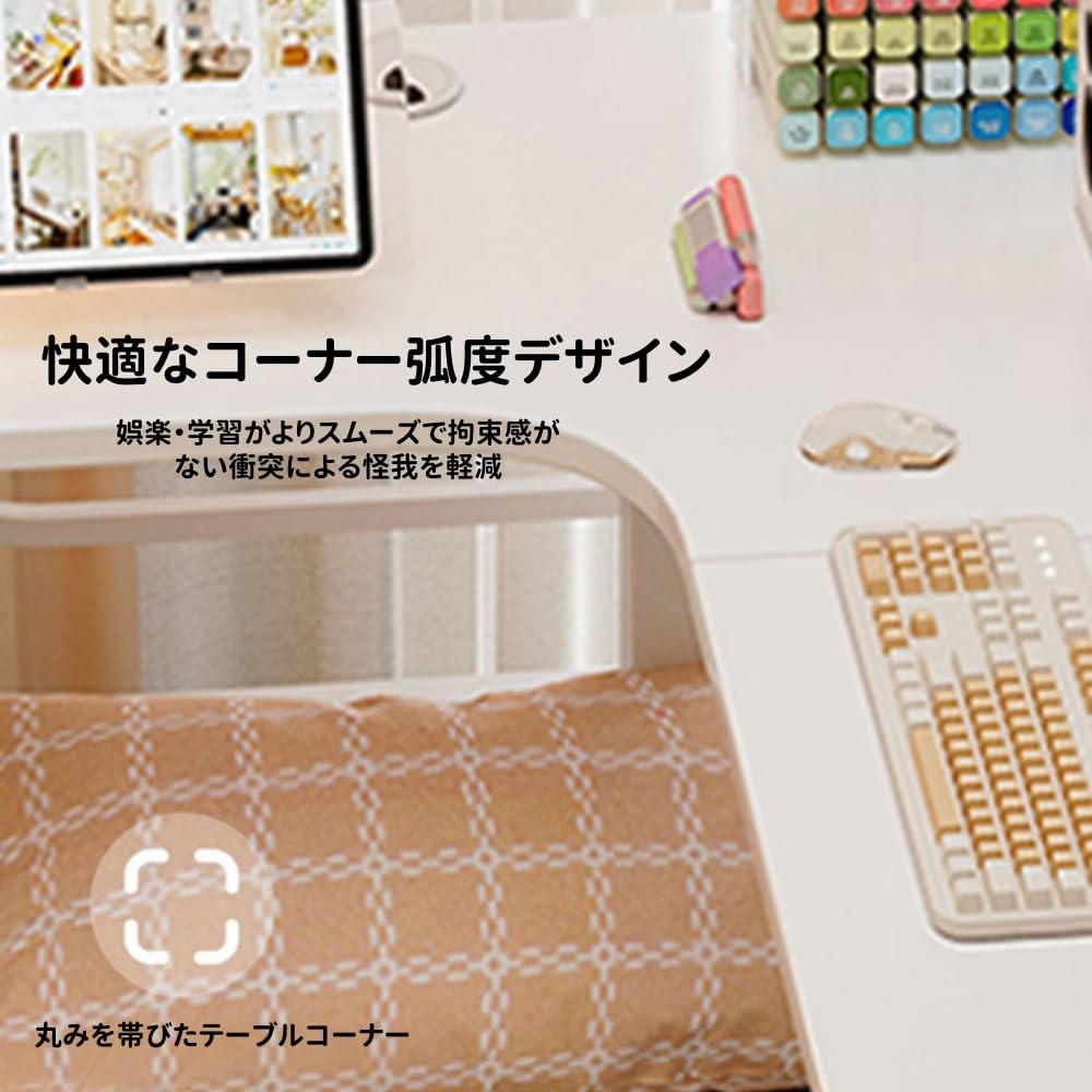 細かなデザインで使い勝手を向上丸みを帯びたコーナーで衝突リスクを軽減,予備の配線孔でケーブルの乱れを防ぐ。脚部空間を高く設計し、長時間座っても疲れにくく、学習作業ゲームなど多用途に使えます。