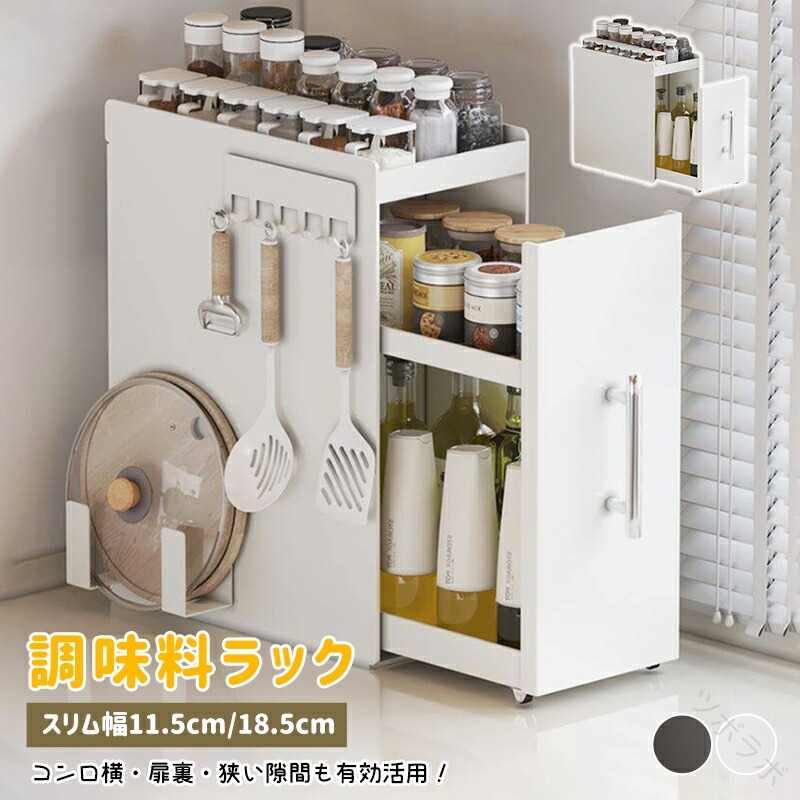 調味料ラック 2段 3段 引き出し付き スリム幅11.5cm 18.5cm 多段可動棚 キャスター付き スチール製 省スペース 調味料 油 醤油 隙間収納 調味料ストッカー マグネット キッチン収納