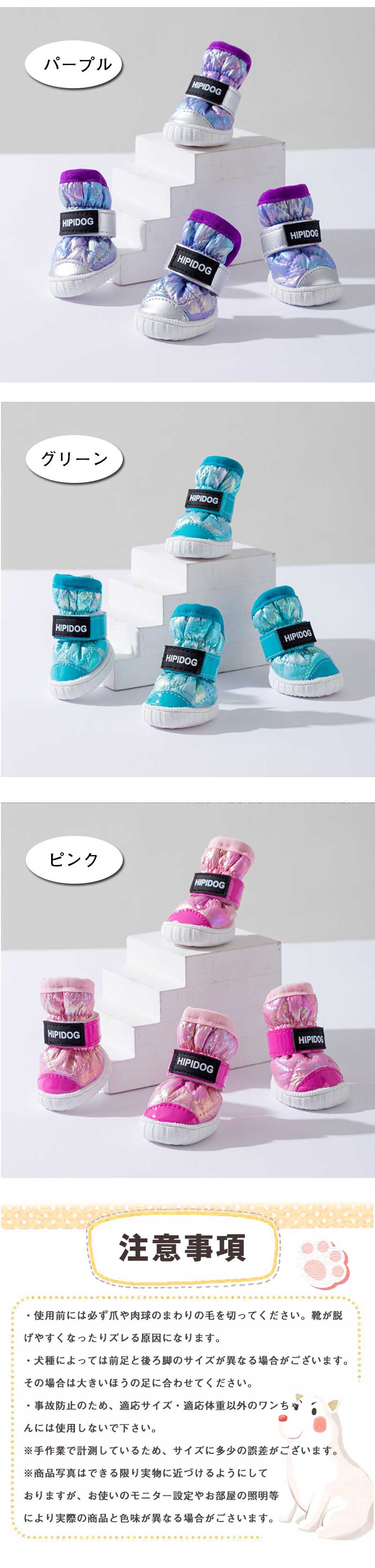 犬靴 ドッグブーツ 冬用 保温 防水 ペット ペットグッズ 新作 パープル グリーン ピンク 1# 2# 3# 4# 5#